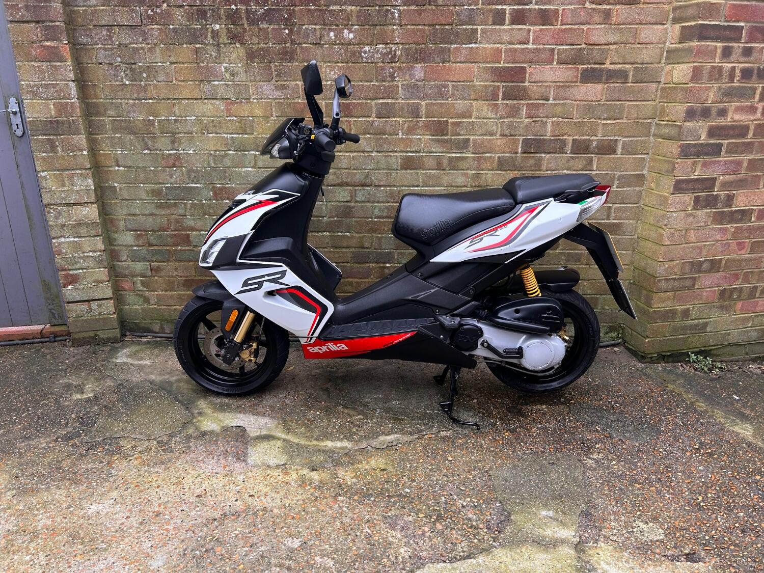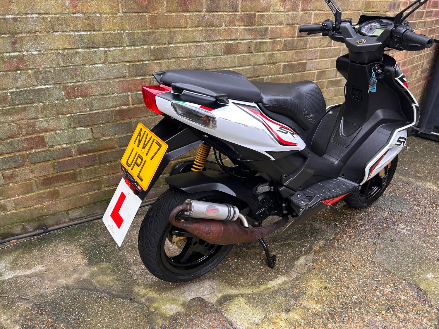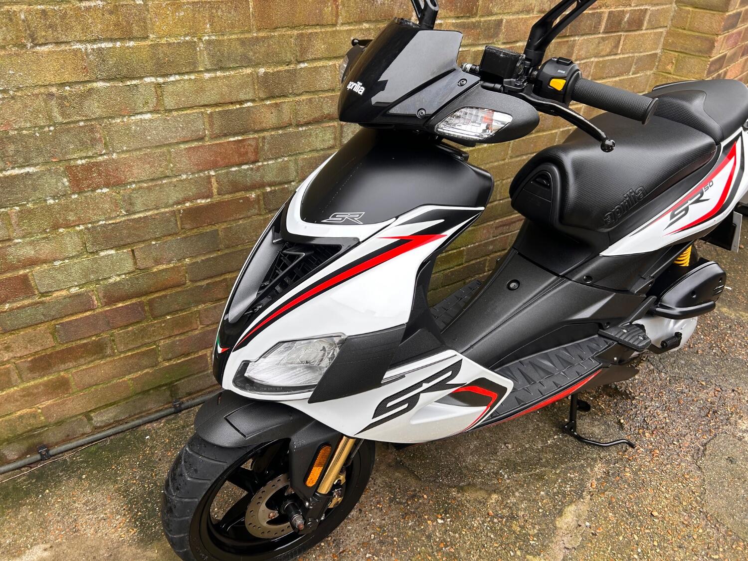Here we have this stunning Aprilia Sr 50 r , Fitted with Leo vince TT Exhaust, This Scooter is 2 Stroke & De-restricted. This bike has 2 keys, Part service history, and low miles – only 5520 miles. This Aprilia will benefit from a service ready for the new owner. The bike will come with 3 months warranty as standard, with the option to extend to 12-24 months. We offer nationwide delivery on all of our bikes. HPI checked, comprehensive safety check, MOT history check, and professional valet included. Reserve this bike on our website now