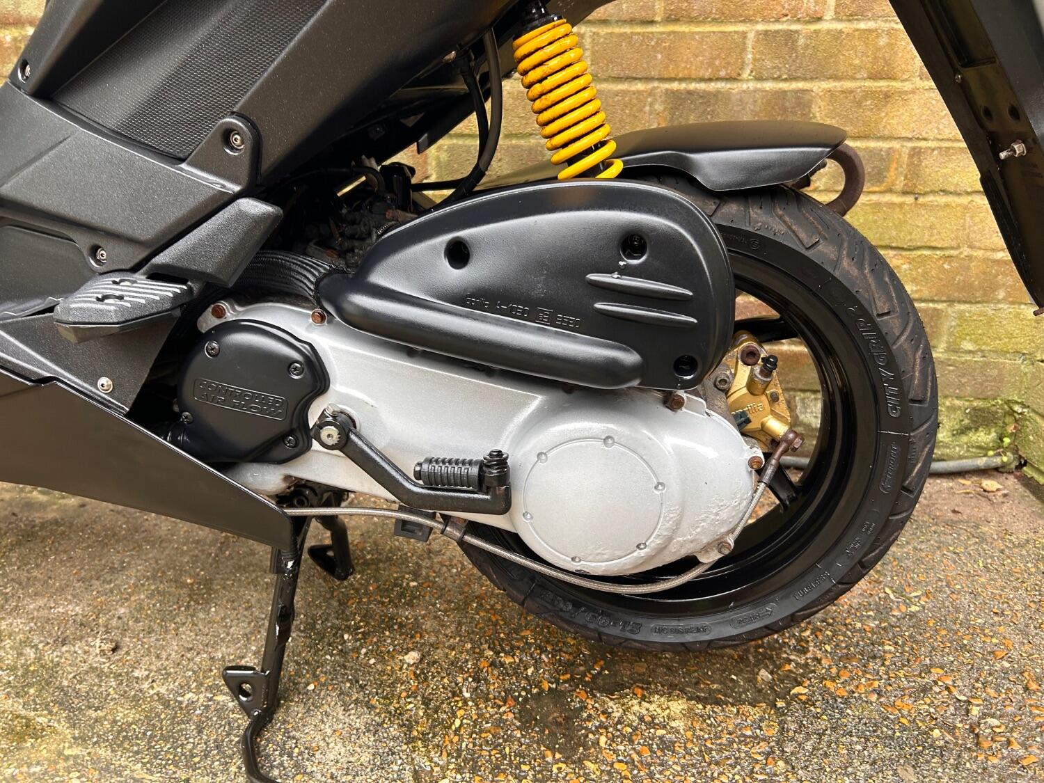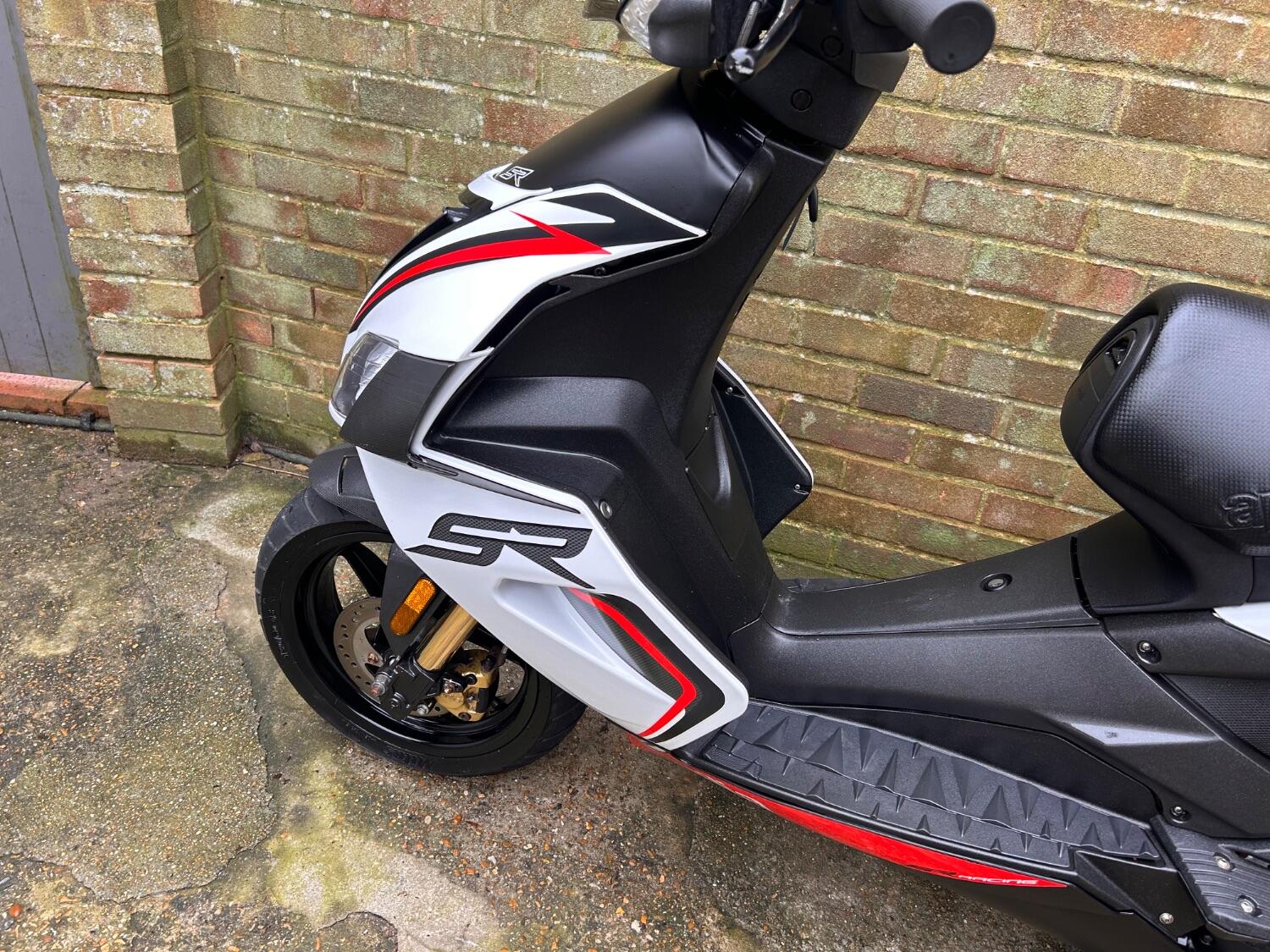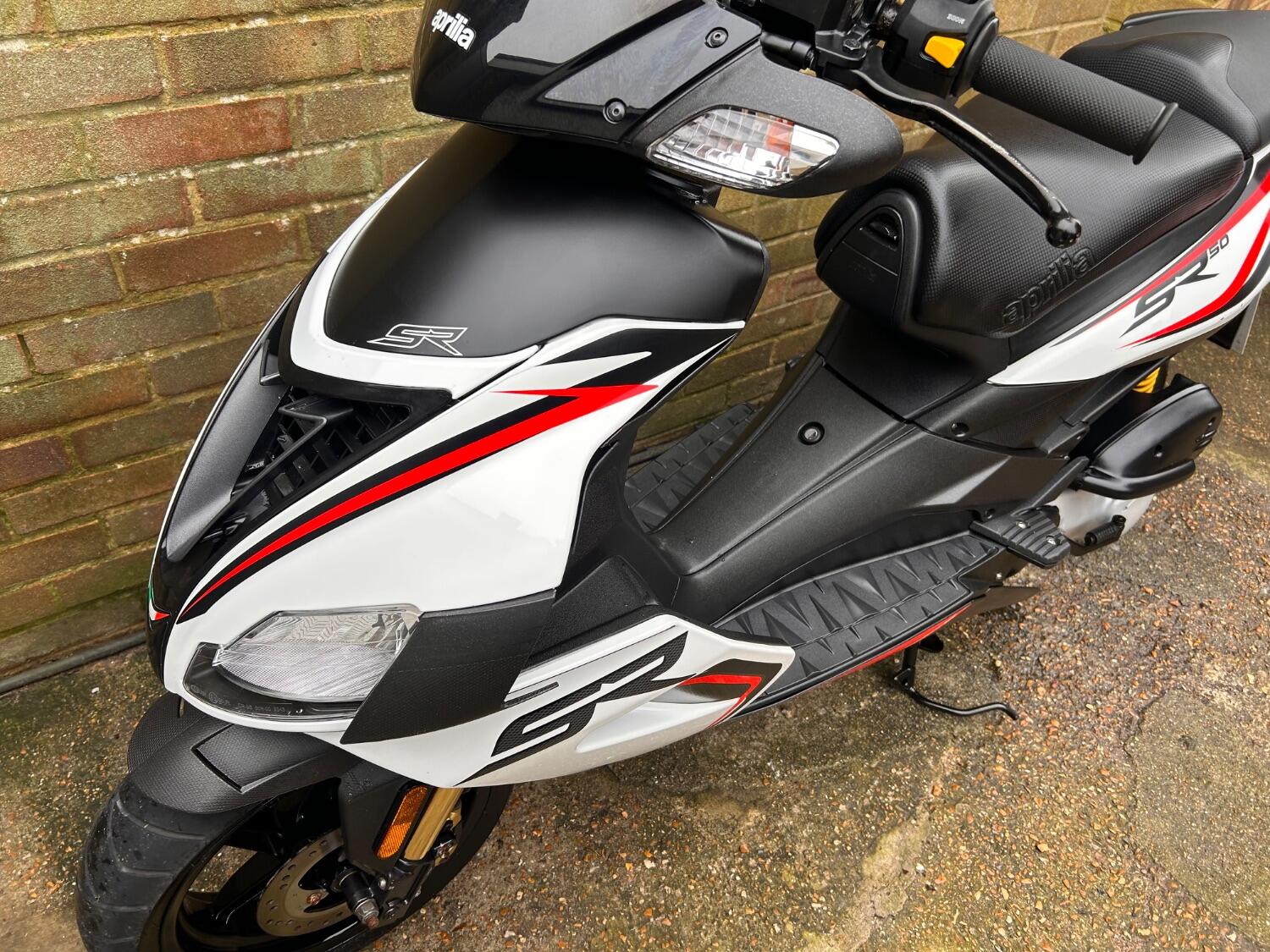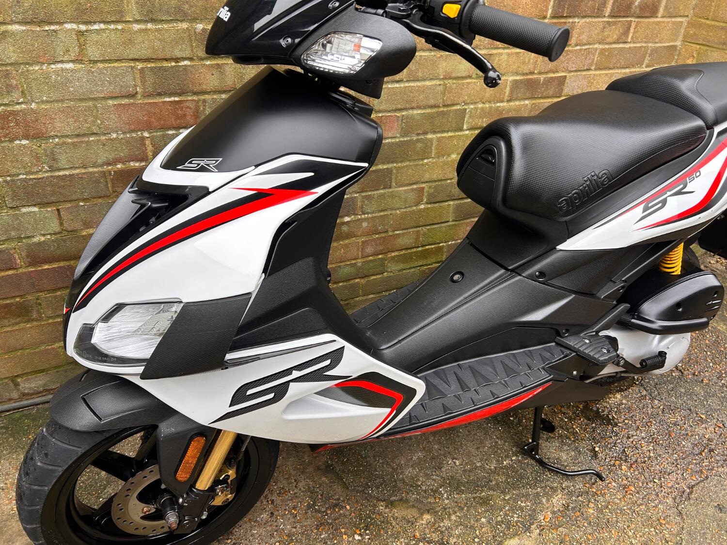 Here we have this stunning Aprilia Sr 50 r , Fitted with Leo vince TT Exhaust, This Scooter is 2 Stroke & De-restricted. This bike has 2 keys, Part service history, and low miles – only 5520 miles. This Aprilia will benefit from a service ready for the new owner. The bike will come with 3 months warranty as standard, with the option to extend to 12-24 months. We offer nationwide delivery on all of our bikes. HPI checked, comprehensive safety check, MOT history check, and professional valet included. Reserve this bike on our website now