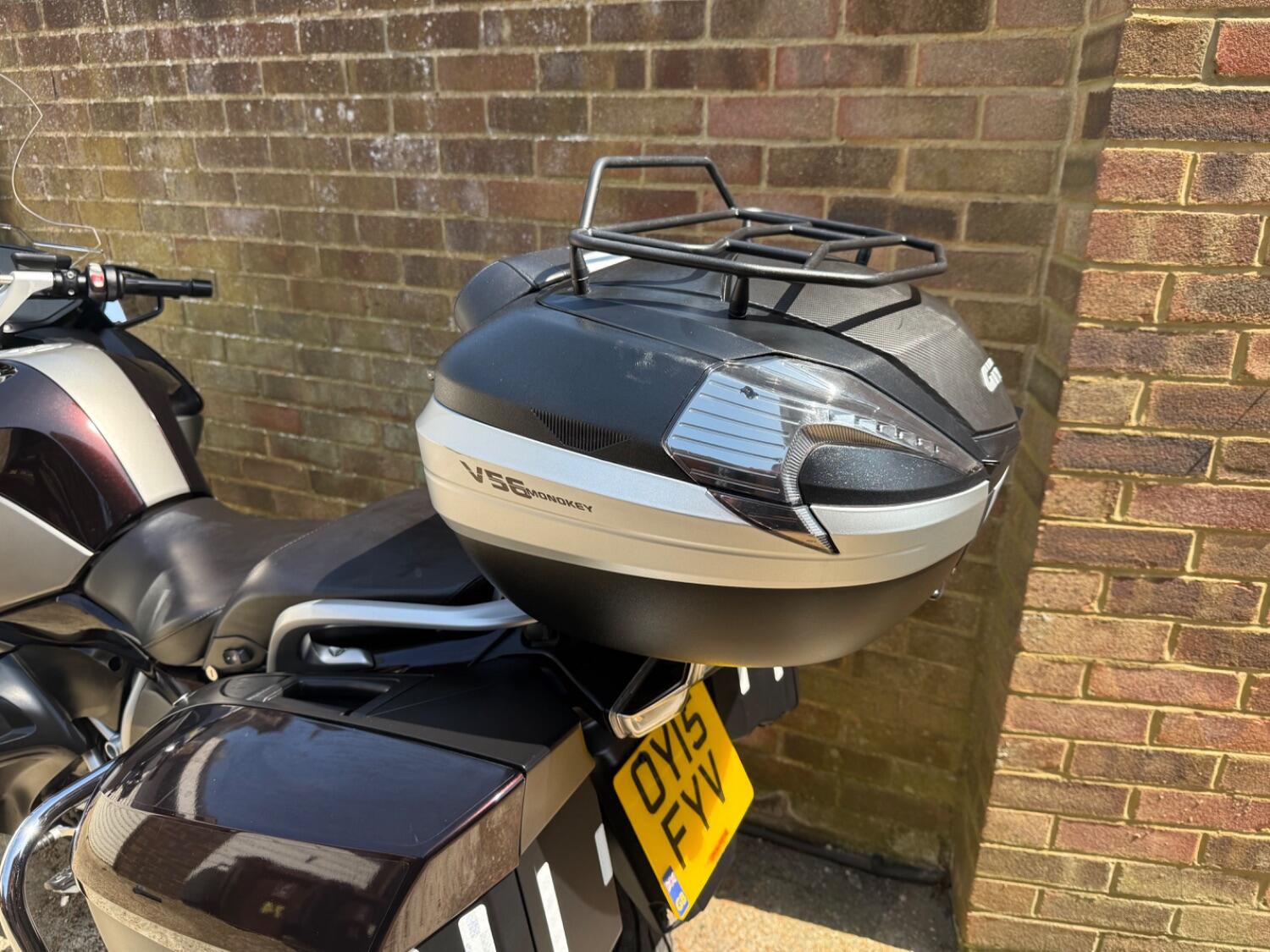• Givi V56 Maxia 4 top box with cushion, rack, and mounting plate