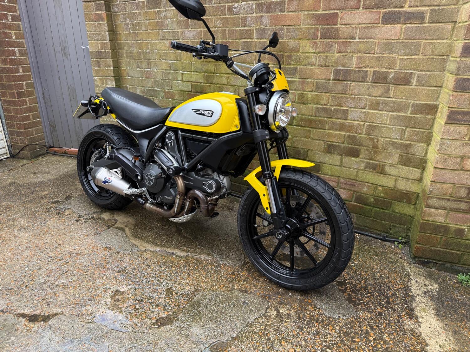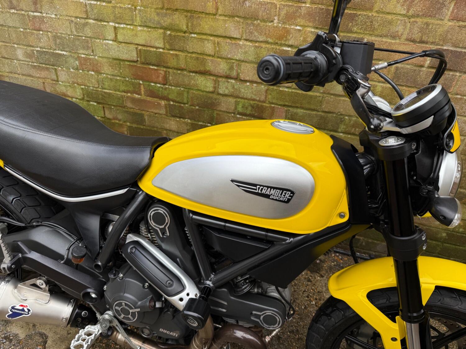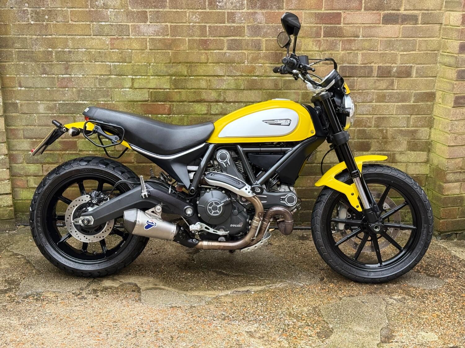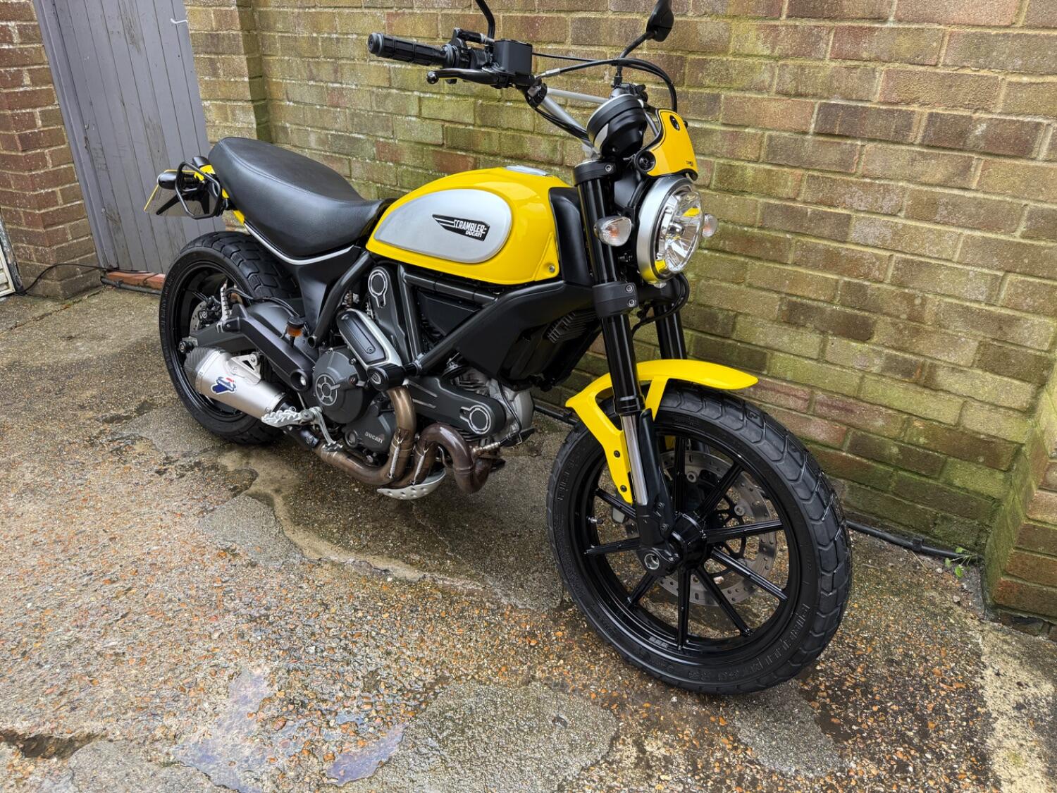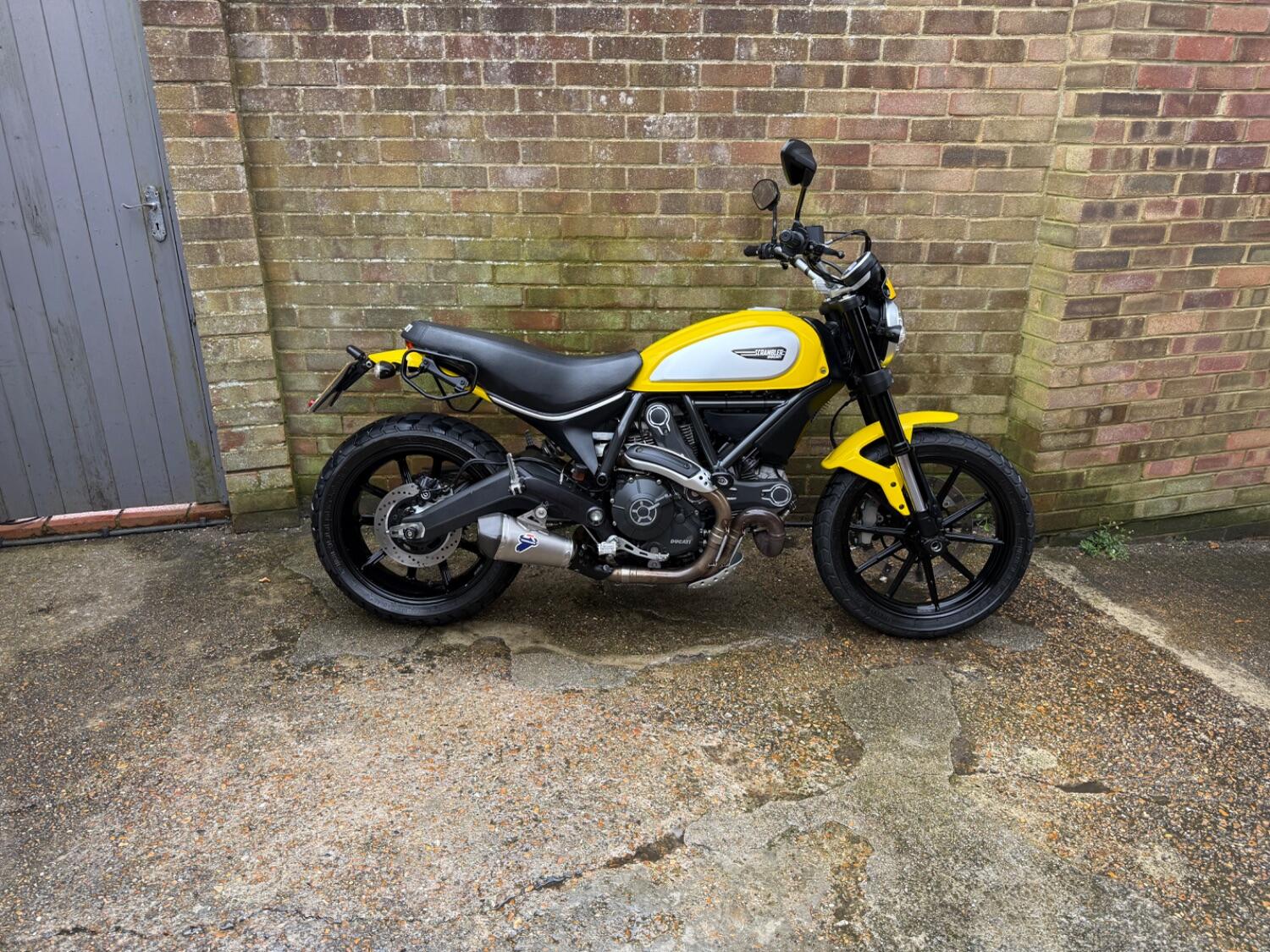 Here we have this stunning DUCATI SCRAMBLER 800 ICON , Fitted with Genuine soft panniers, R&G frame protectors. R&G spindle sliders, TERMIGNONI Exhaust This bike has 2 keys, Full dealer service history, and low miles – only 12601 miles. This Ducati will benefit from a service & new cam Belts ready for the new owner. The bike will come with 3 months warranty as standard, with the option to extend to 12-24 months. We offer nationwide delivery on all of our bikes. HPI checked, comprehensive safety check, MOT history check, and professional valet included. Reserve this bike on our website now