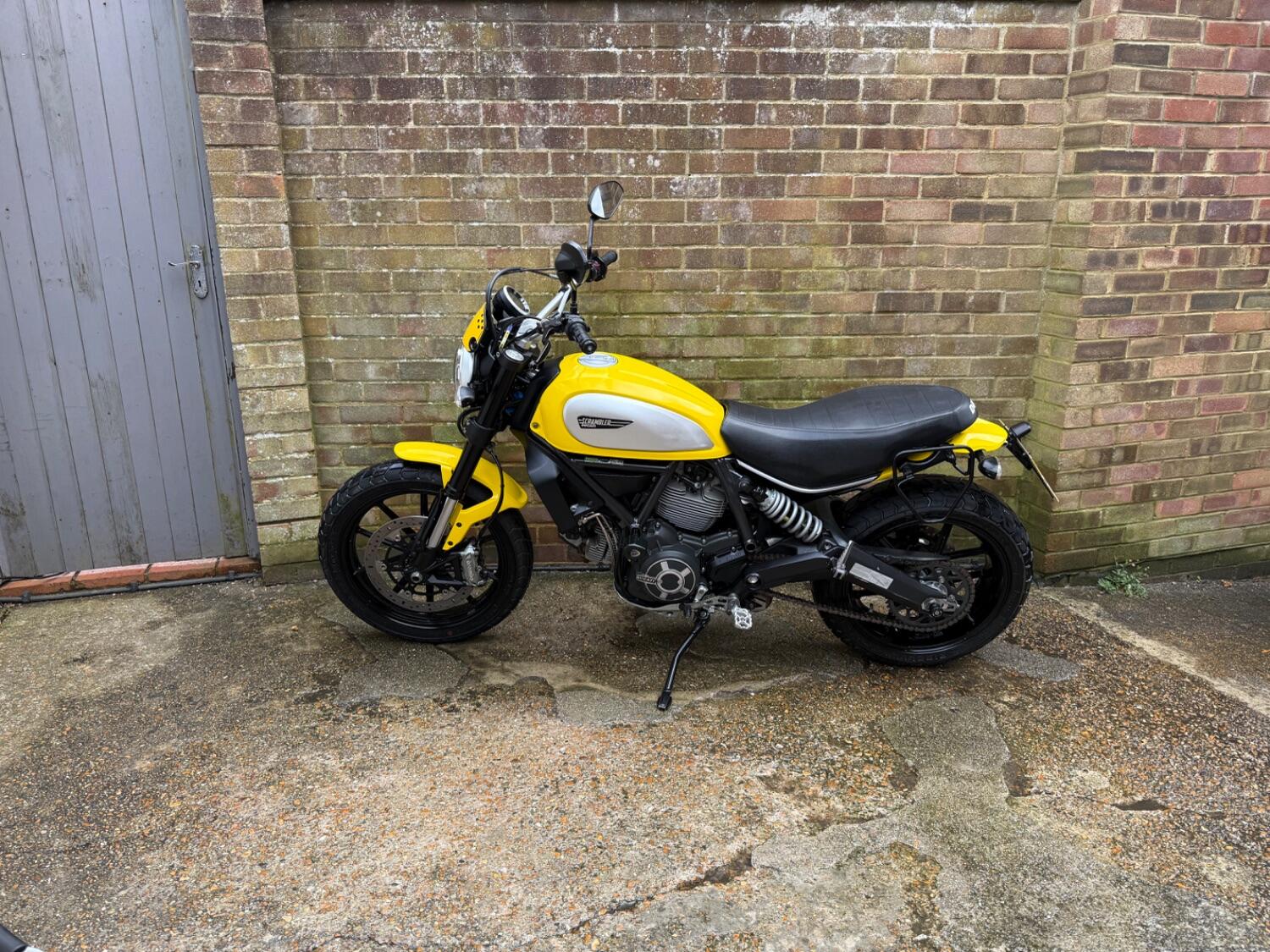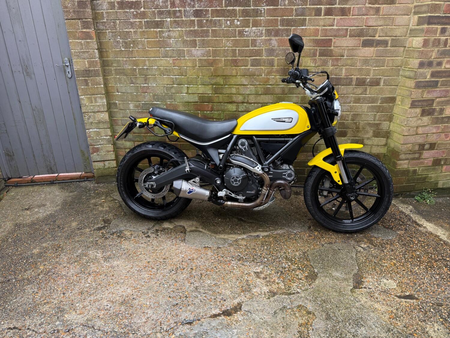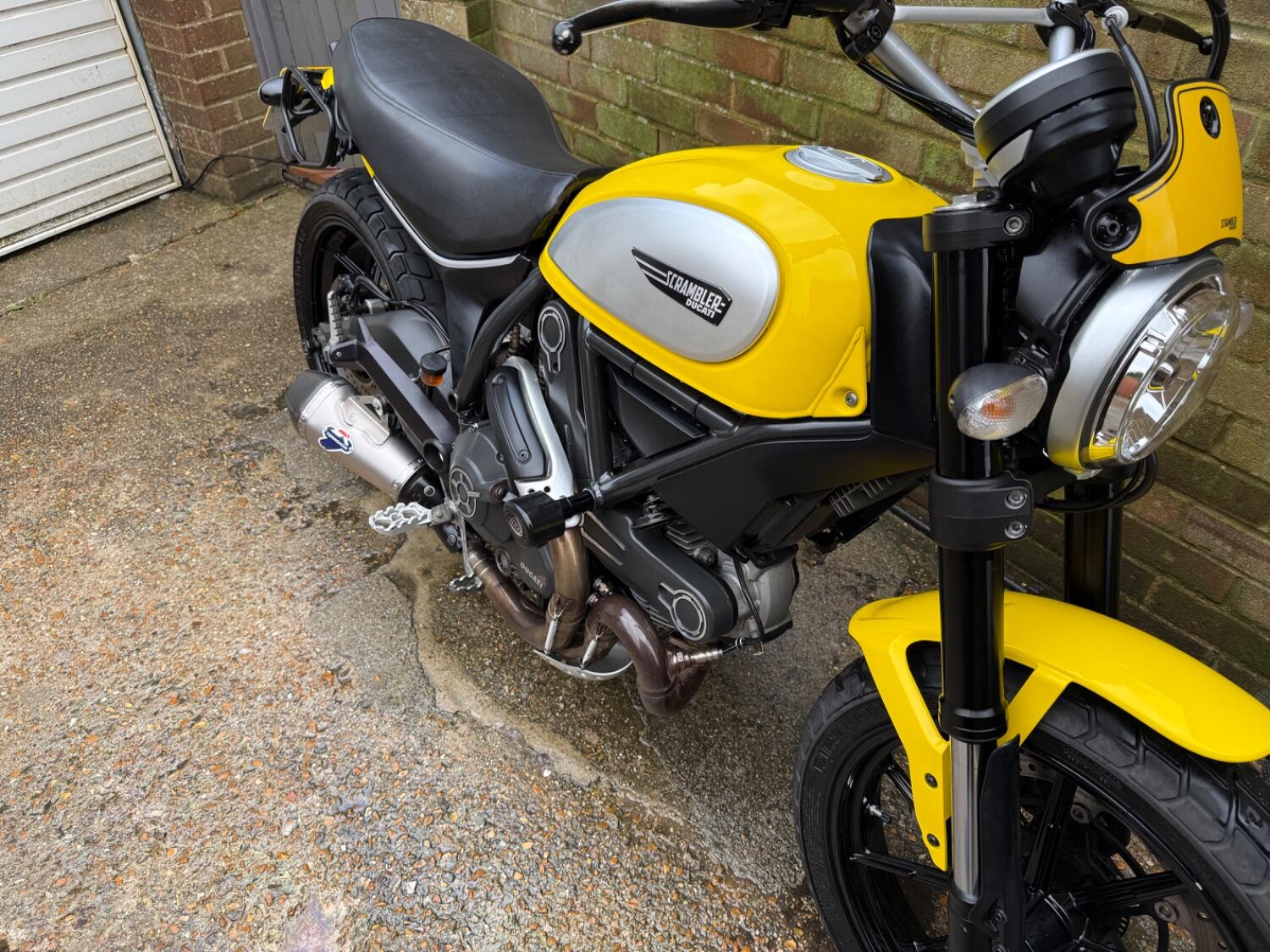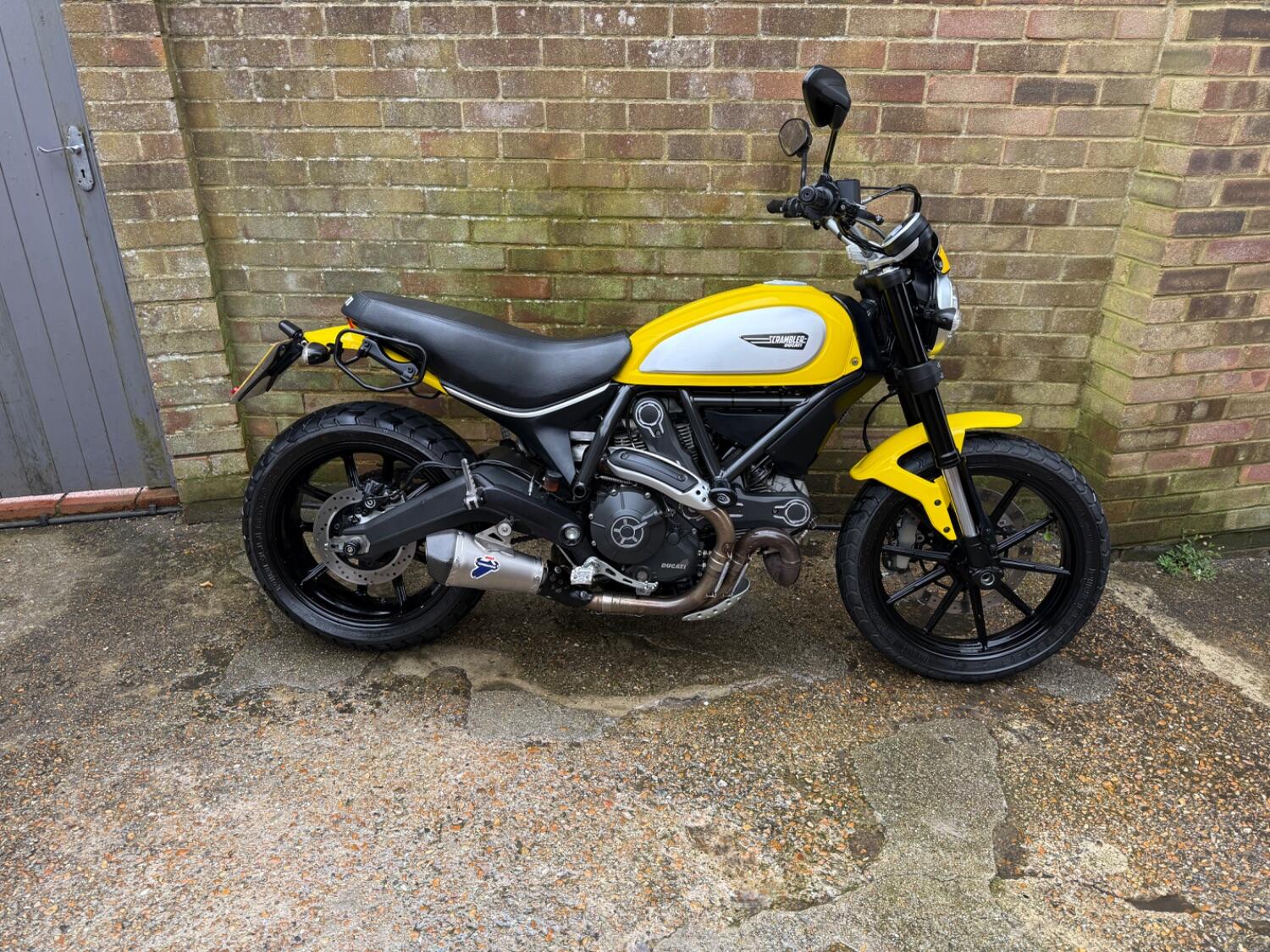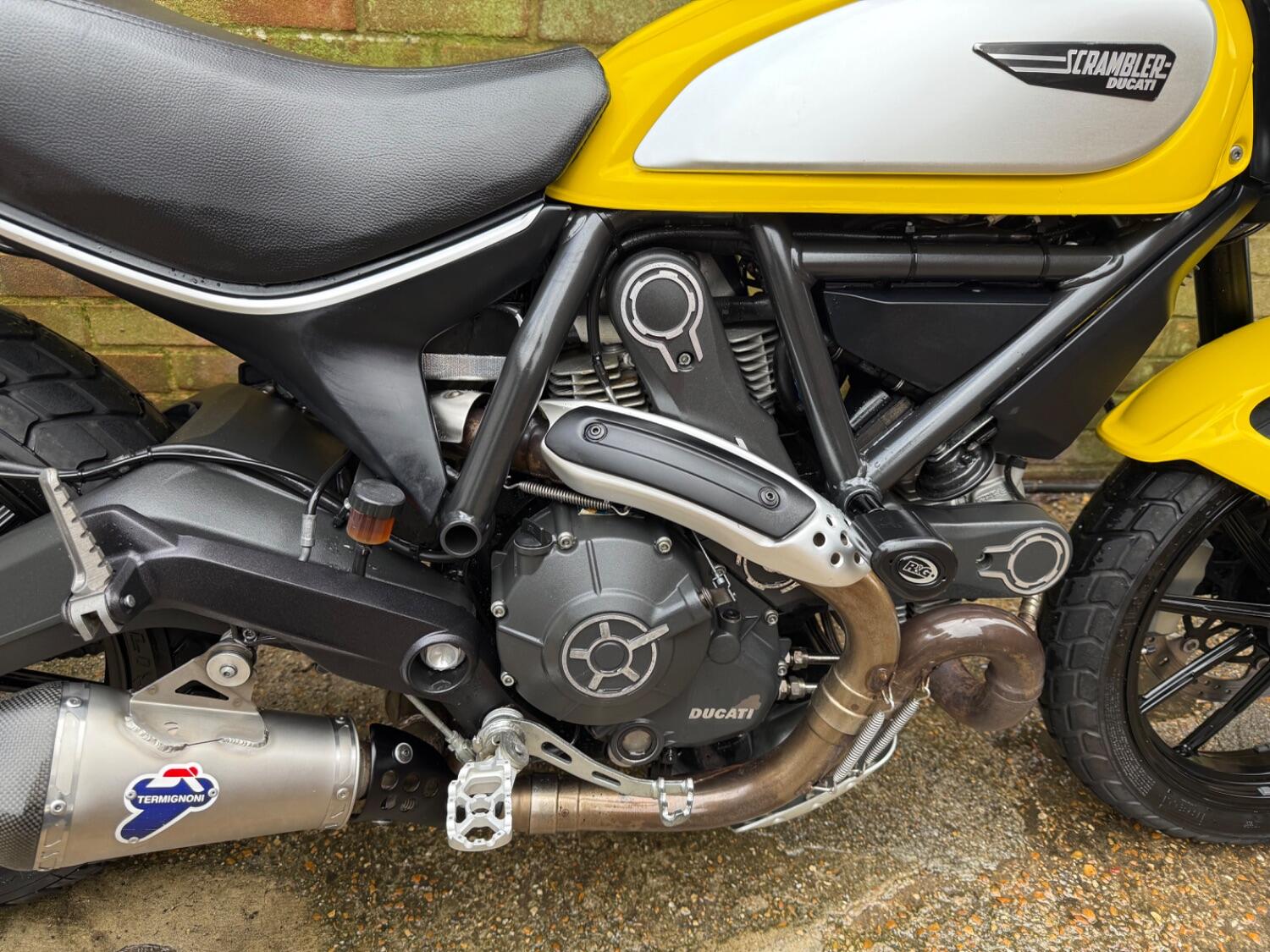 Here we have this stunning DUCATI SCRAMBLER 800 ICON , Fitted with Genuine soft panniers, R&G frame protectors. R&G spindle sliders, TERMIGNONI Exhaust This bike has 2 keys, Full dealer service history, and low miles – only 12601 miles. This Ducati will benefit from a service & new cam Belts ready for the new owner. The bike will come with 3 months warranty as standard, with the option to extend to 12-24 months. We offer nationwide delivery on all of our bikes. HPI checked, comprehensive safety check, MOT history check, and professional valet included. Reserve this bike on our website now