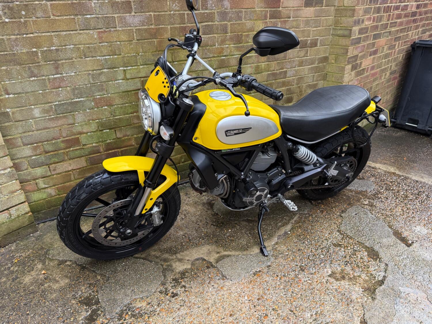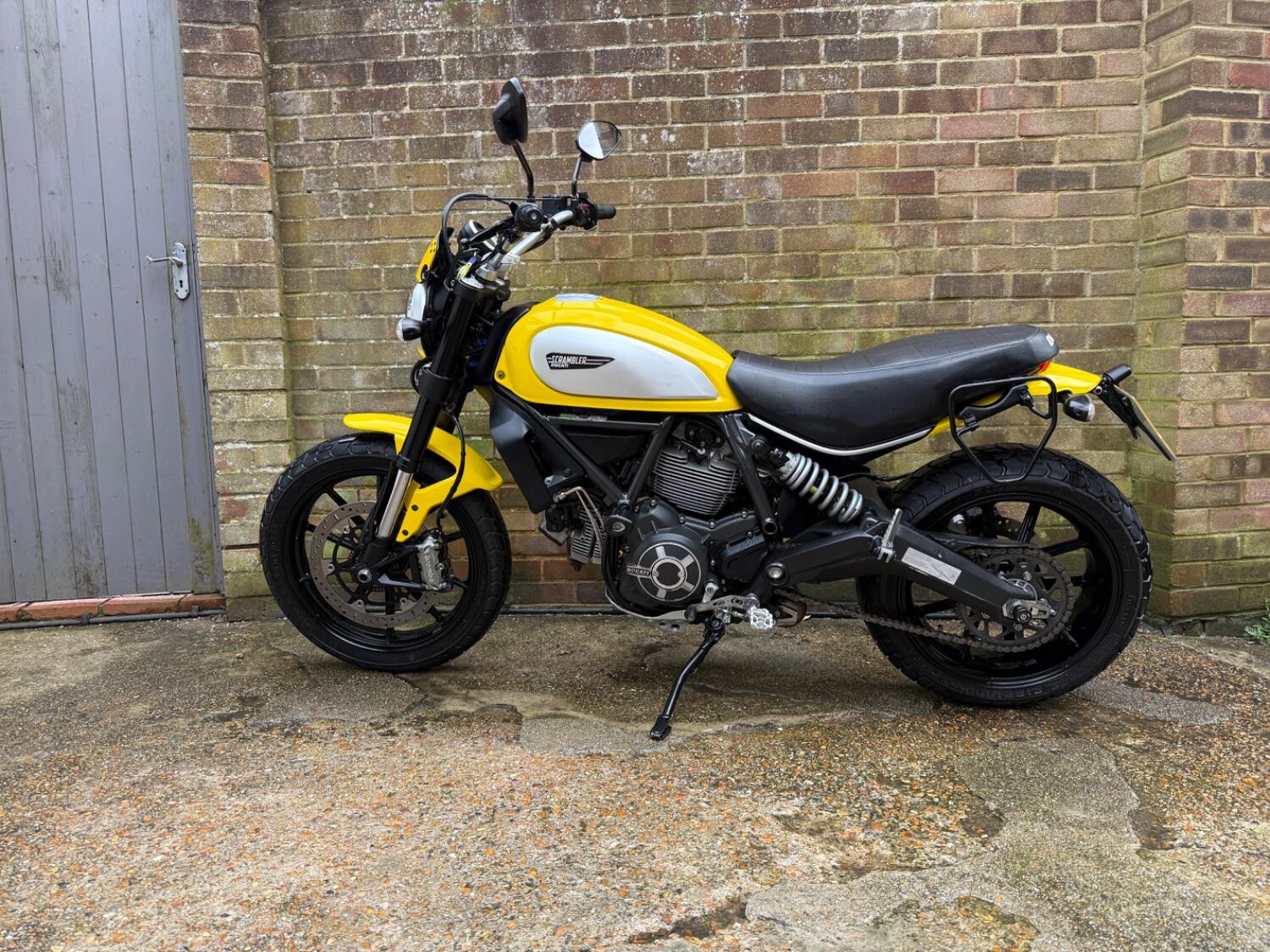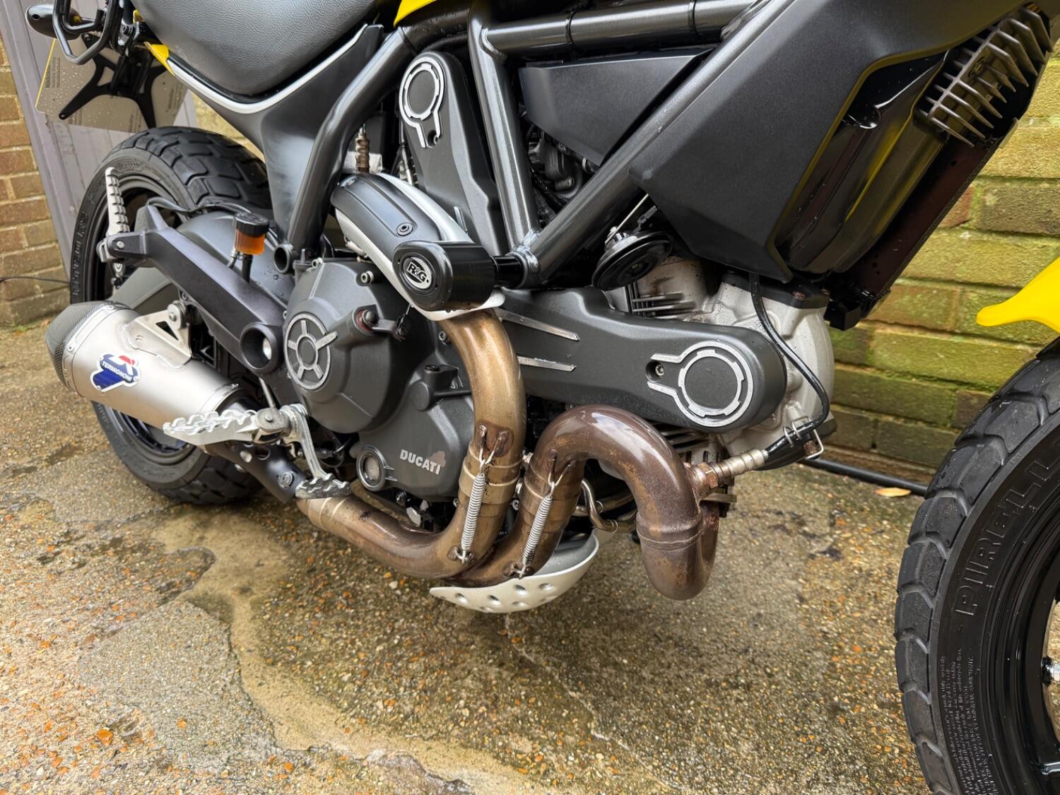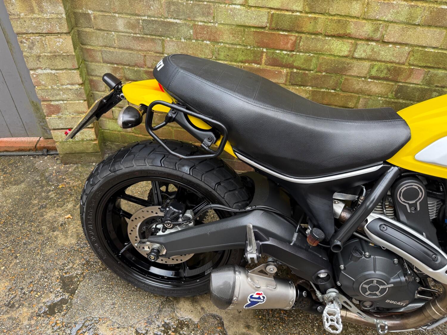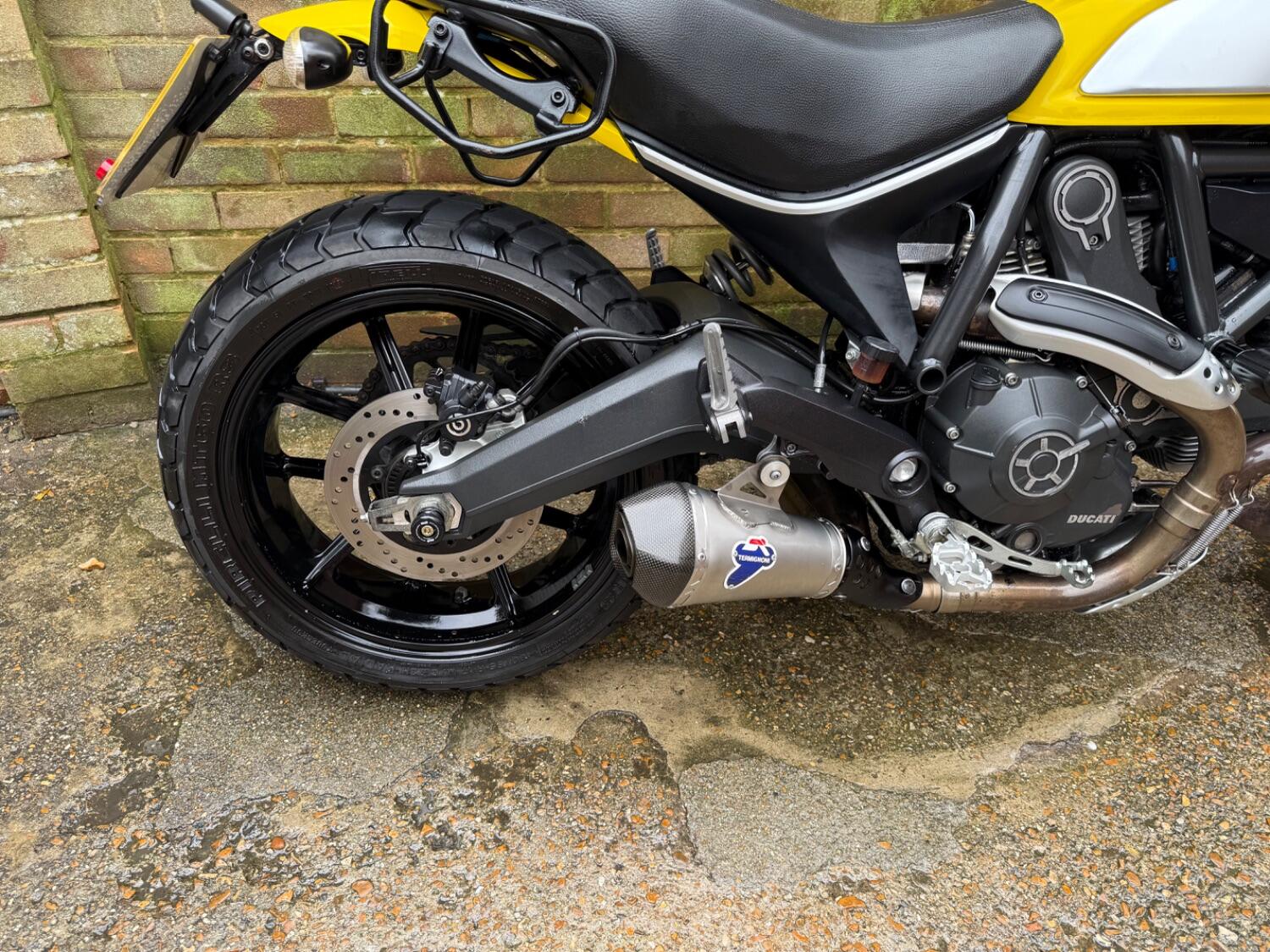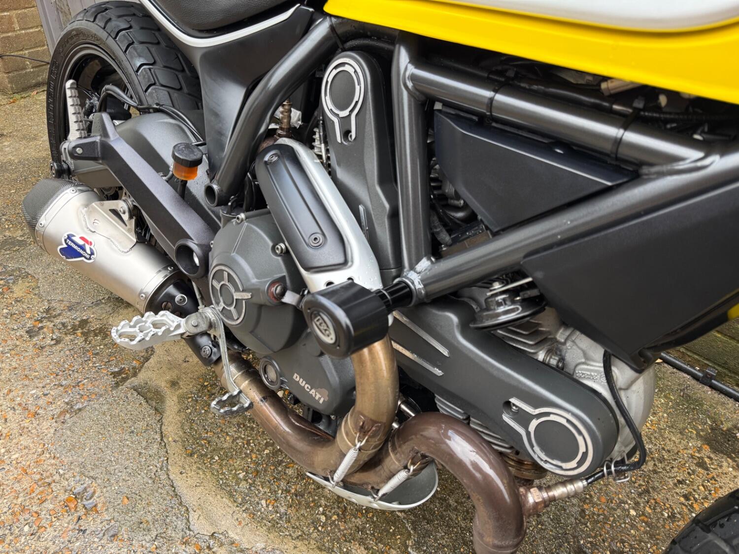 Here we have this stunning DUCATI SCRAMBLER 800 ICON , Fitted with Genuine soft panniers, R&G frame protectors. R&G spindle sliders, TERMIGNONI Exhaust This bike has 2 keys, Full dealer service history, and low miles – only 12601 miles. This Ducati will benefit from a service & new cam Belts ready for the new owner. The bike will come with 3 months warranty as standard, with the option to extend to 12-24 months. We offer nationwide delivery on all of our bikes. HPI checked, comprehensive safety check, MOT history check, and professional valet included. Reserve this bike on our website now
