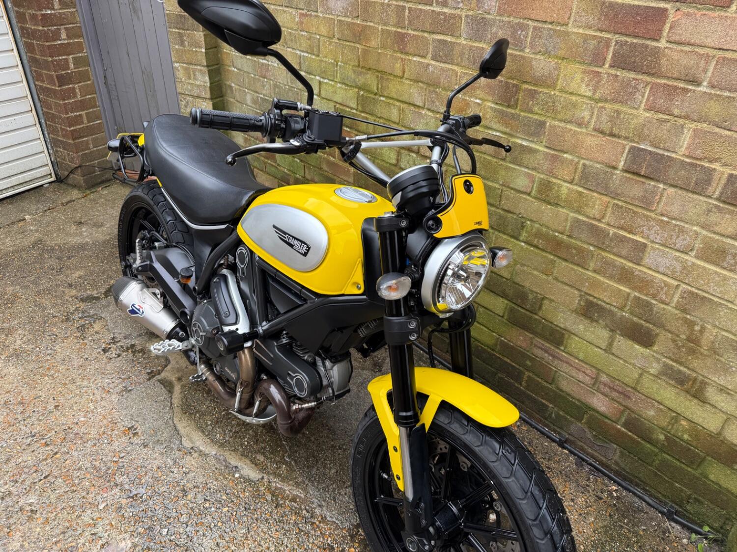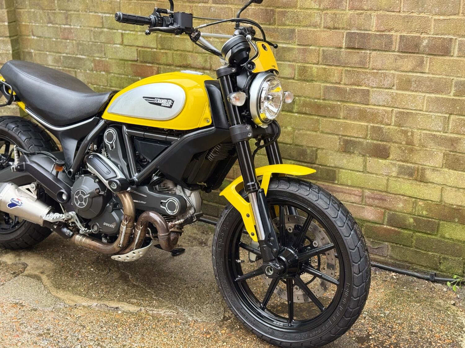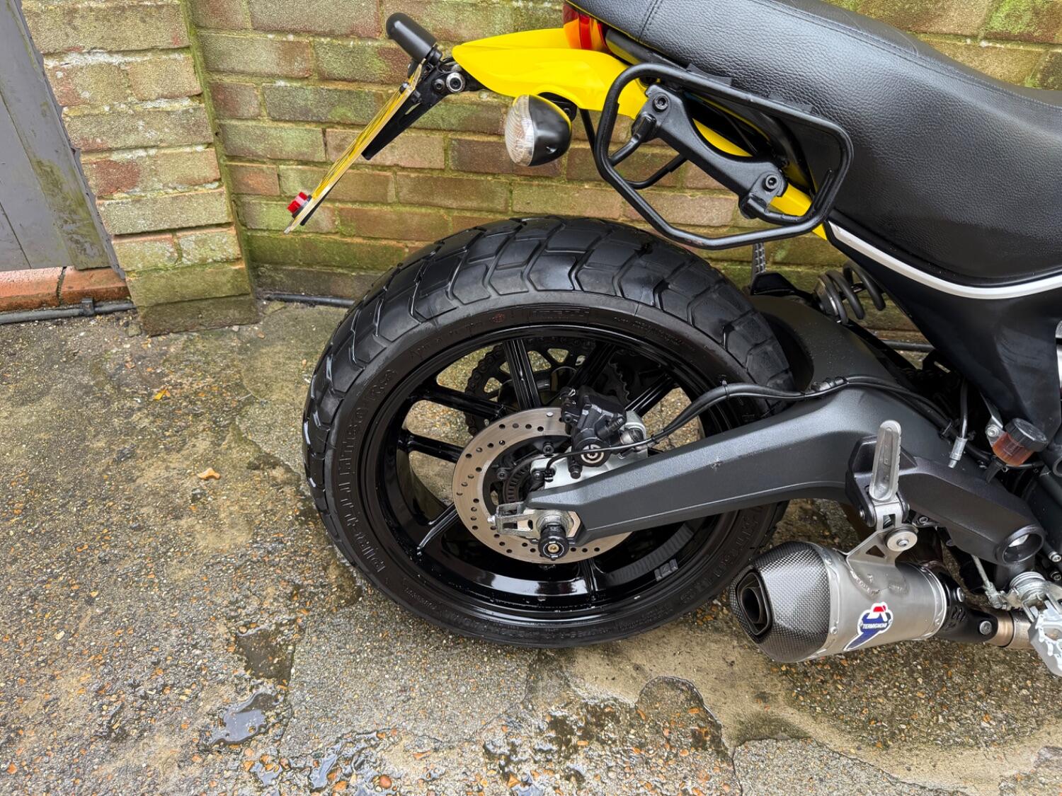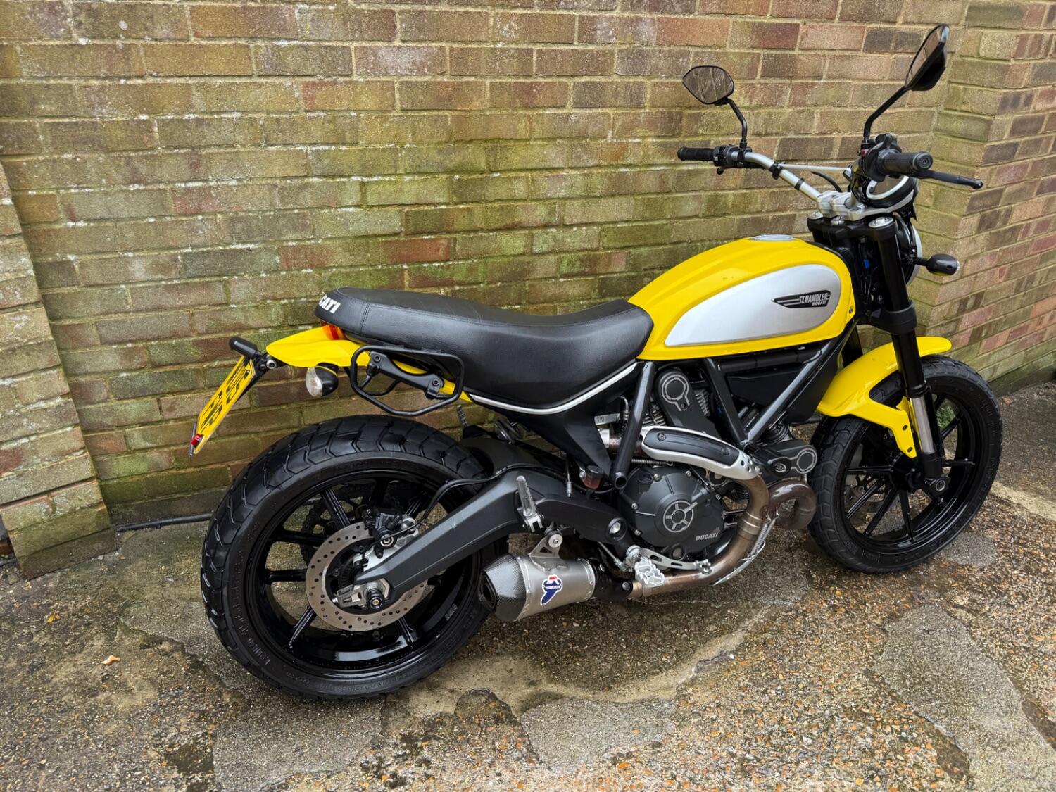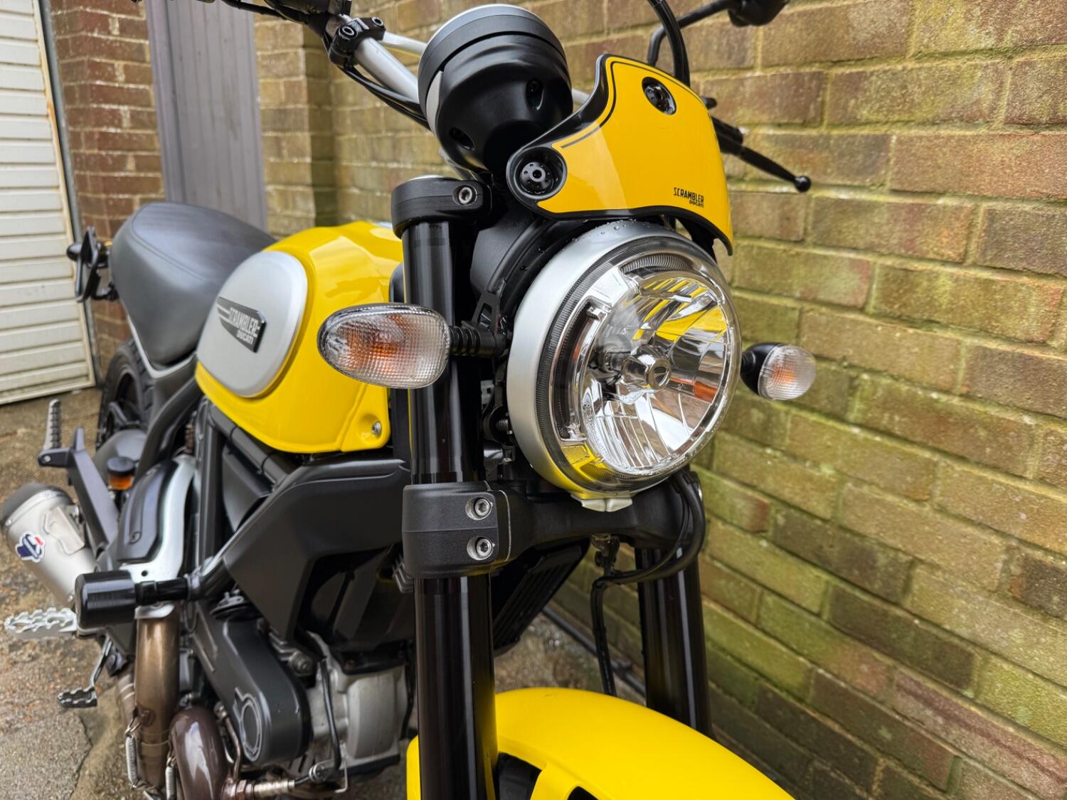 Here we have this stunning DUCATI SCRAMBLER 800 ICON , Fitted with Genuine soft panniers, R&G frame protectors. R&G spindle sliders, TERMIGNONI Exhaust This bike has 2 keys, Full dealer service history, and low miles – only 12601 miles. This Ducati will benefit from a service & new cam Belts ready for the new owner. The bike will come with 3 months warranty as standard, with the option to extend to 12-24 months. We offer nationwide delivery on all of our bikes. HPI checked, comprehensive safety check, MOT history check, and professional valet included. Reserve this bike on our website now