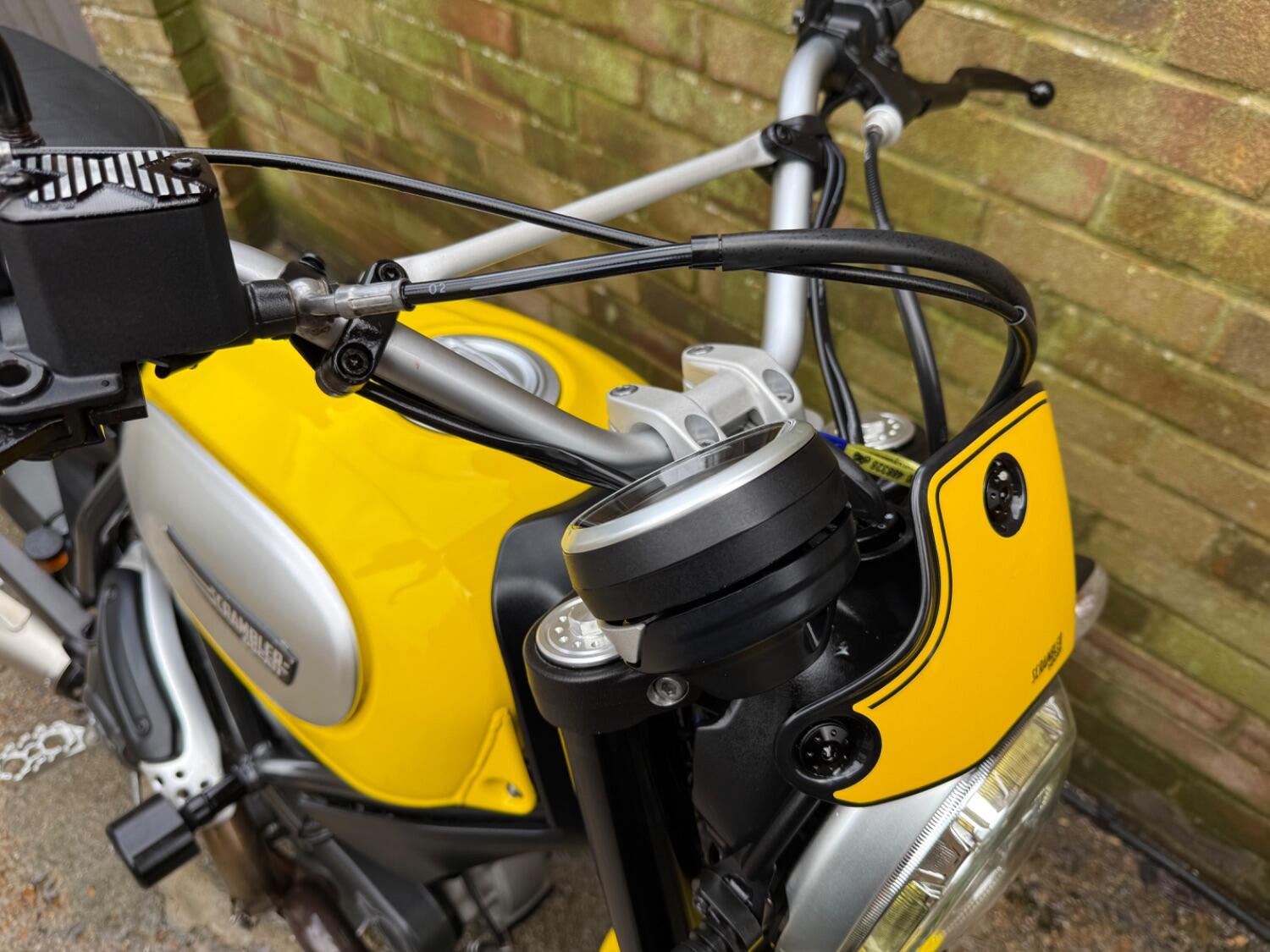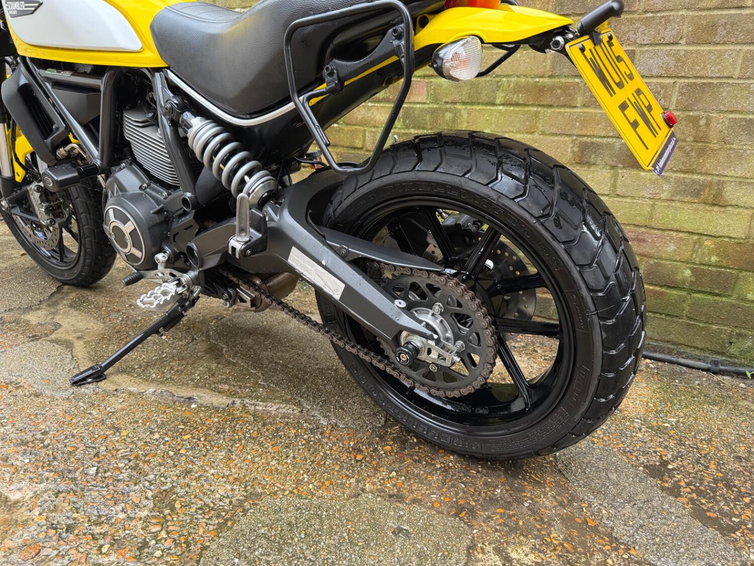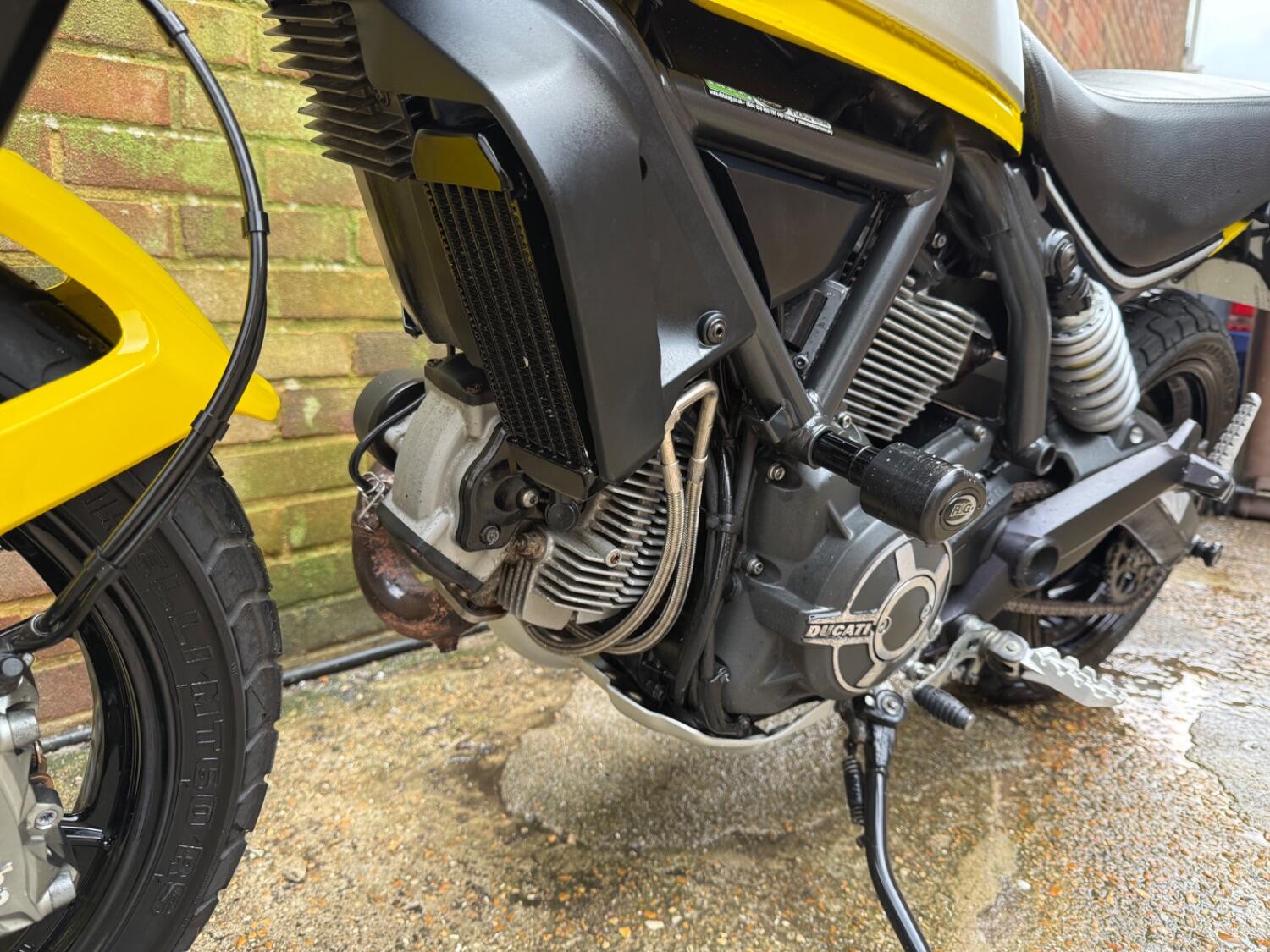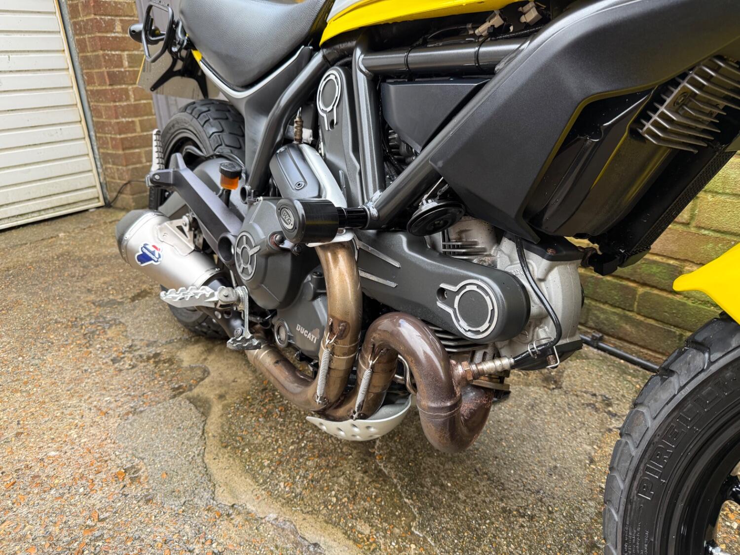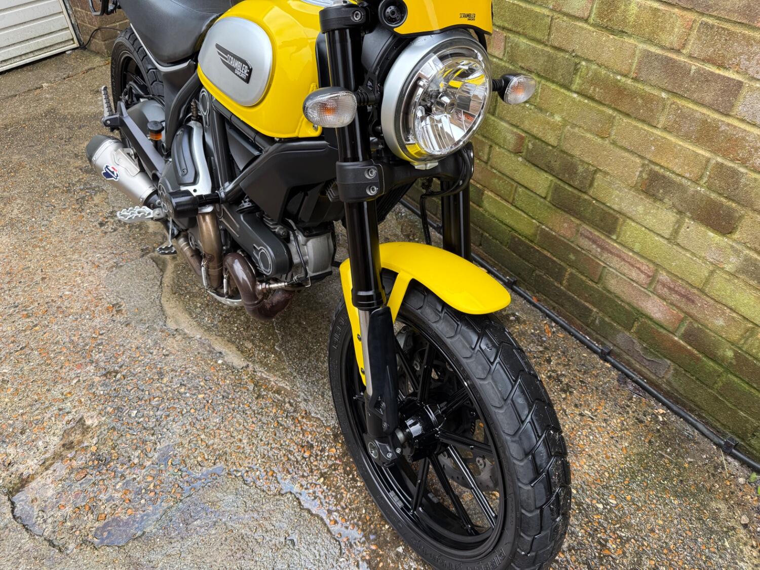 Here we have this stunning DUCATI SCRAMBLER 800 ICON , Fitted with Genuine soft panniers, R&G frame protectors. R&G spindle sliders, TERMIGNONI Exhaust This bike has 2 keys, Full dealer service history, and low miles – only 12601 miles. This Ducati will benefit from a service & new cam Belts ready for the new owner. The bike will come with 3 months warranty as standard, with the option to extend to 12-24 months. We offer nationwide delivery on all of our bikes. HPI checked, comprehensive safety check, MOT history check, and professional valet included. Reserve this bike on our website now