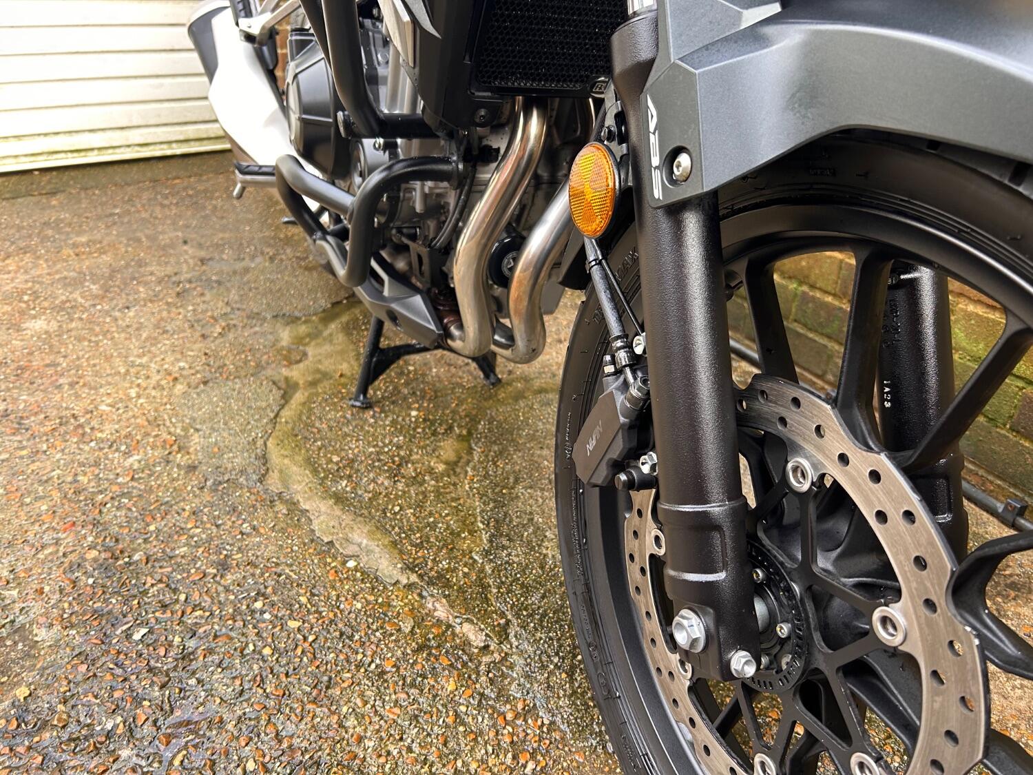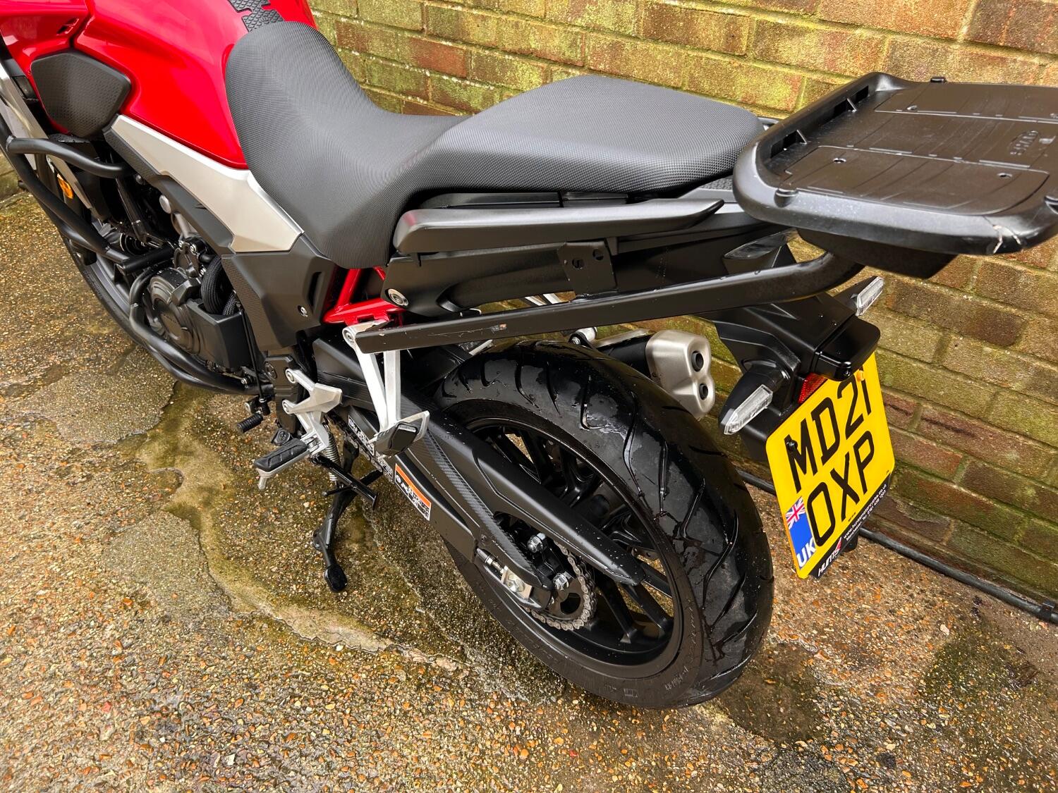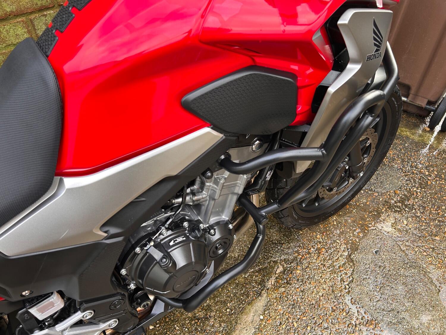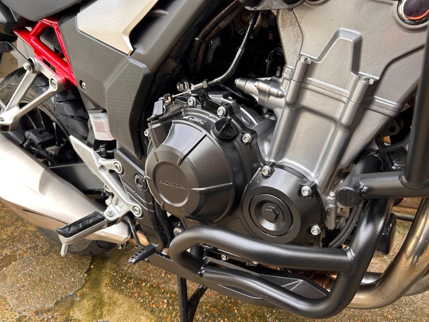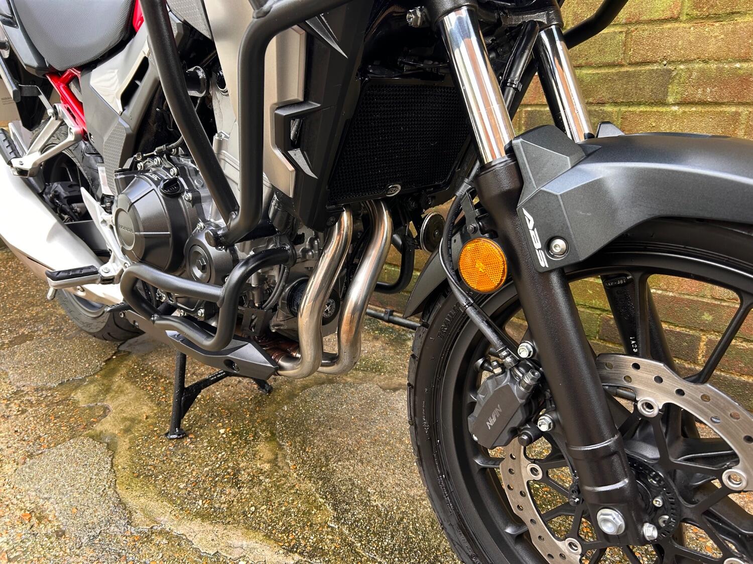 Here we have this stunning Honda CB500X, fitted with lots of extras: screen extender, rear rack & Shad top box plate, handguards, R&G radiator guard, engine bars, fairing bars, and main stand. This bike has 2 keys, full service history, and low miles – only 4047 miles. The bike will come with 3 months warranty as standard, with the option to extend to 12-24 months. We offer nationwide delivery on all of our bikes. HPI checked, comprehensive safety check, MOT history check, and professional valet included. Reserve this bike on our website now