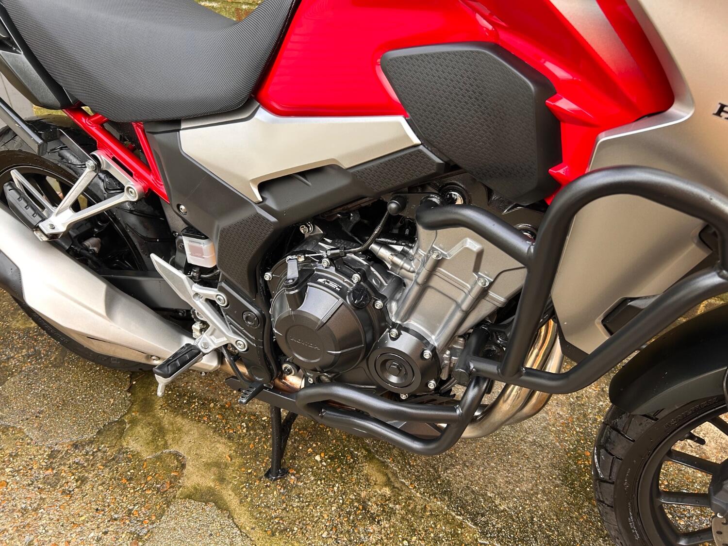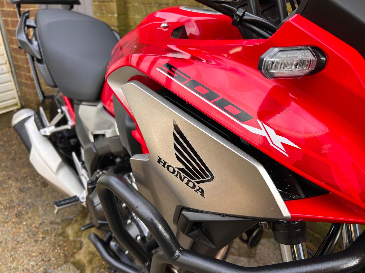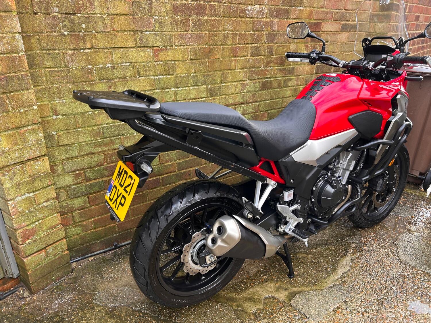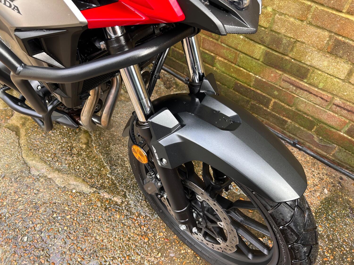 Here we have this stunning Honda CB500X, fitted with lots of extras: screen extender, rear rack & Shad top box plate, handguards, R&G radiator guard, engine bars, fairing bars, and main stand. This bike has 2 keys, full service history, and low miles – only 4047 miles. The bike will come with 3 months warranty as standard, with the option to extend to 12-24 months. We offer nationwide delivery on all of our bikes. HPI checked, comprehensive safety check, MOT history check, and professional valet included. Reserve this bike on our website now