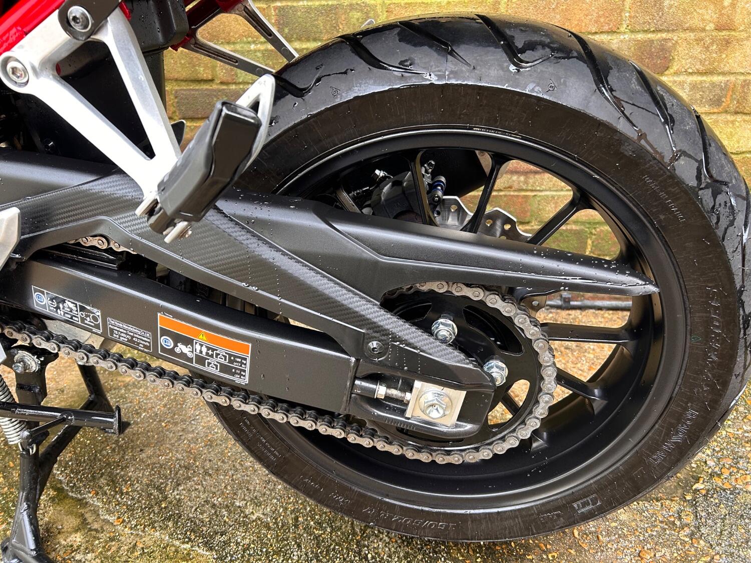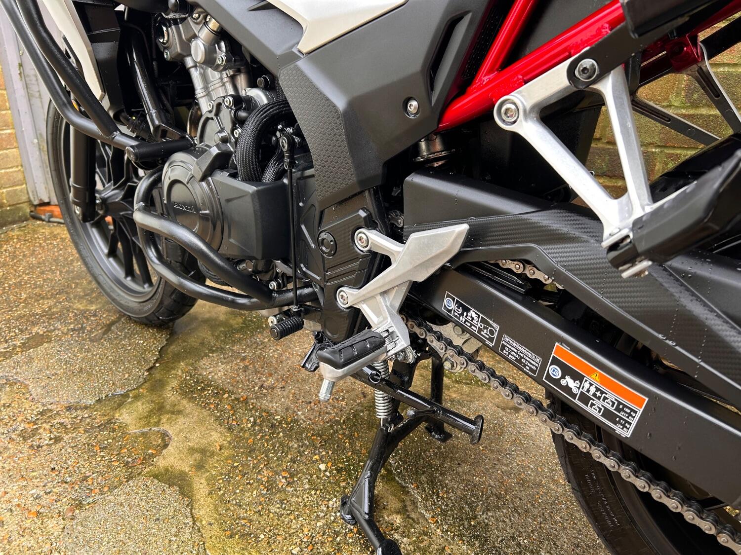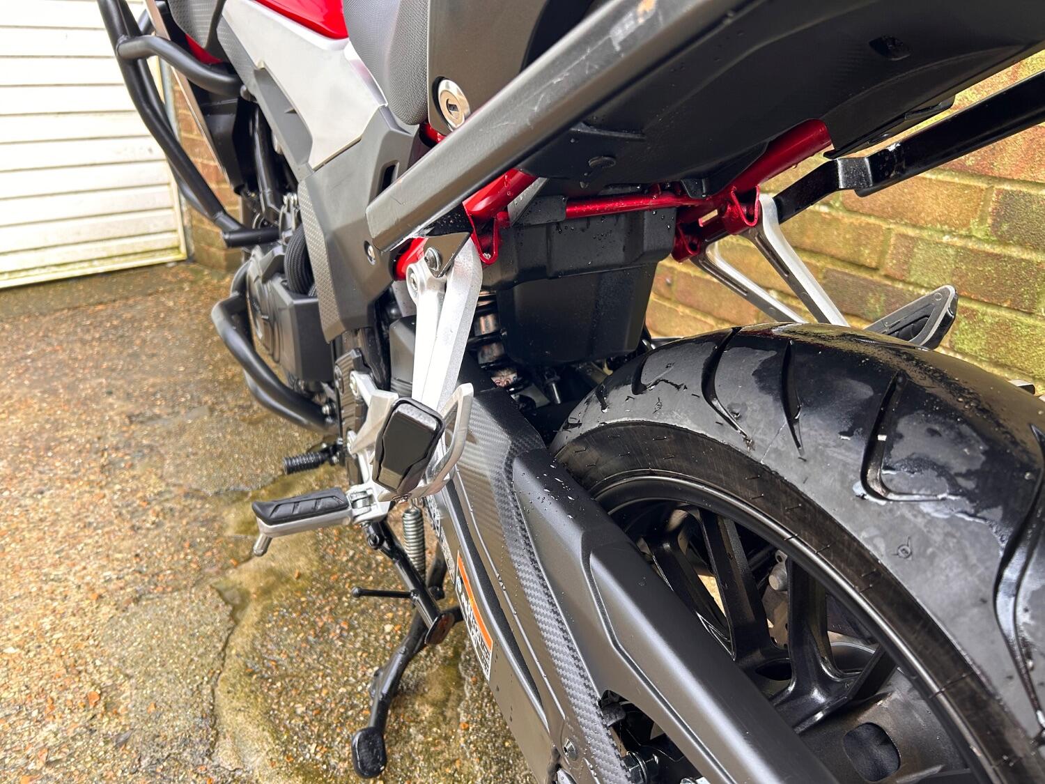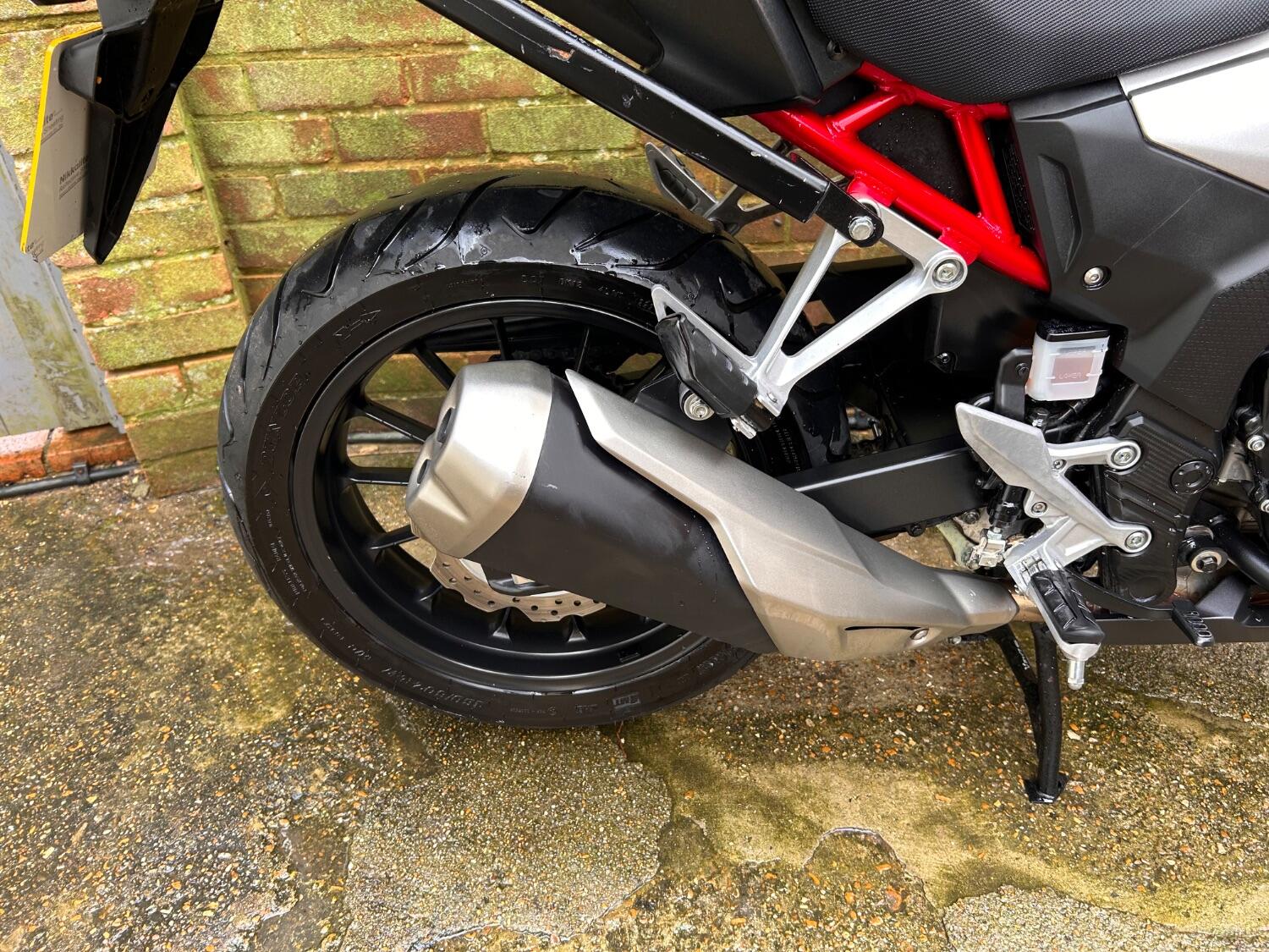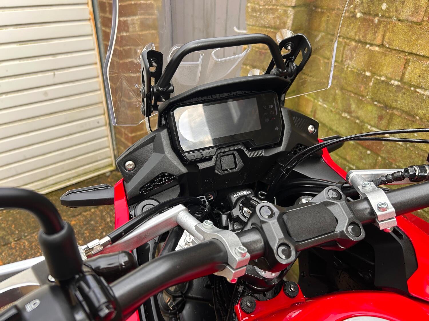Here we have this stunning Honda CB500X, fitted with lots of extras: screen extender, rear rack & Shad top box plate, handguards, R&G radiator guard, engine bars, fairing bars, and main stand. This bike has 2 keys, full service history, and low miles – only 4047 miles. The bike will come with 3 months warranty as standard, with the option to extend to 12-24 months. We offer nationwide delivery on all of our bikes. HPI checked, comprehensive safety check, MOT history check, and professional valet included. Reserve this bike on our website now