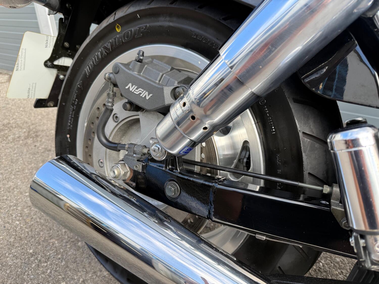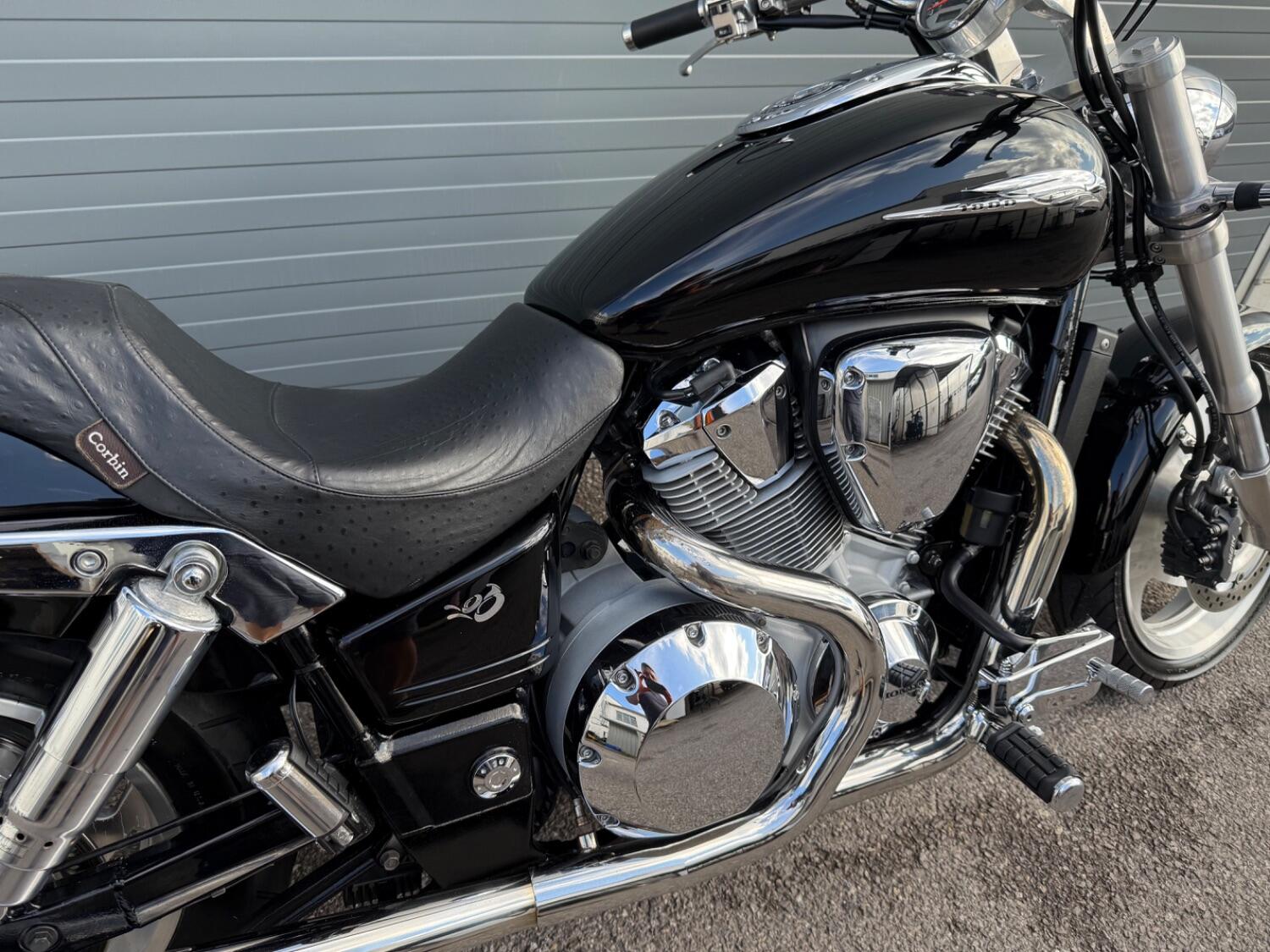 Here we have a stunning Honda VTX 1800C — a torque-rich power cruiser with low mileage, tasteful upgrades, and long-term ownership. Finished in black and fitted with a performance 2-into-1 exhaust, Dynojet Power Commander, and Corbin custom seat, this bike delivers serious road presence and relaxed V-twin cruising.