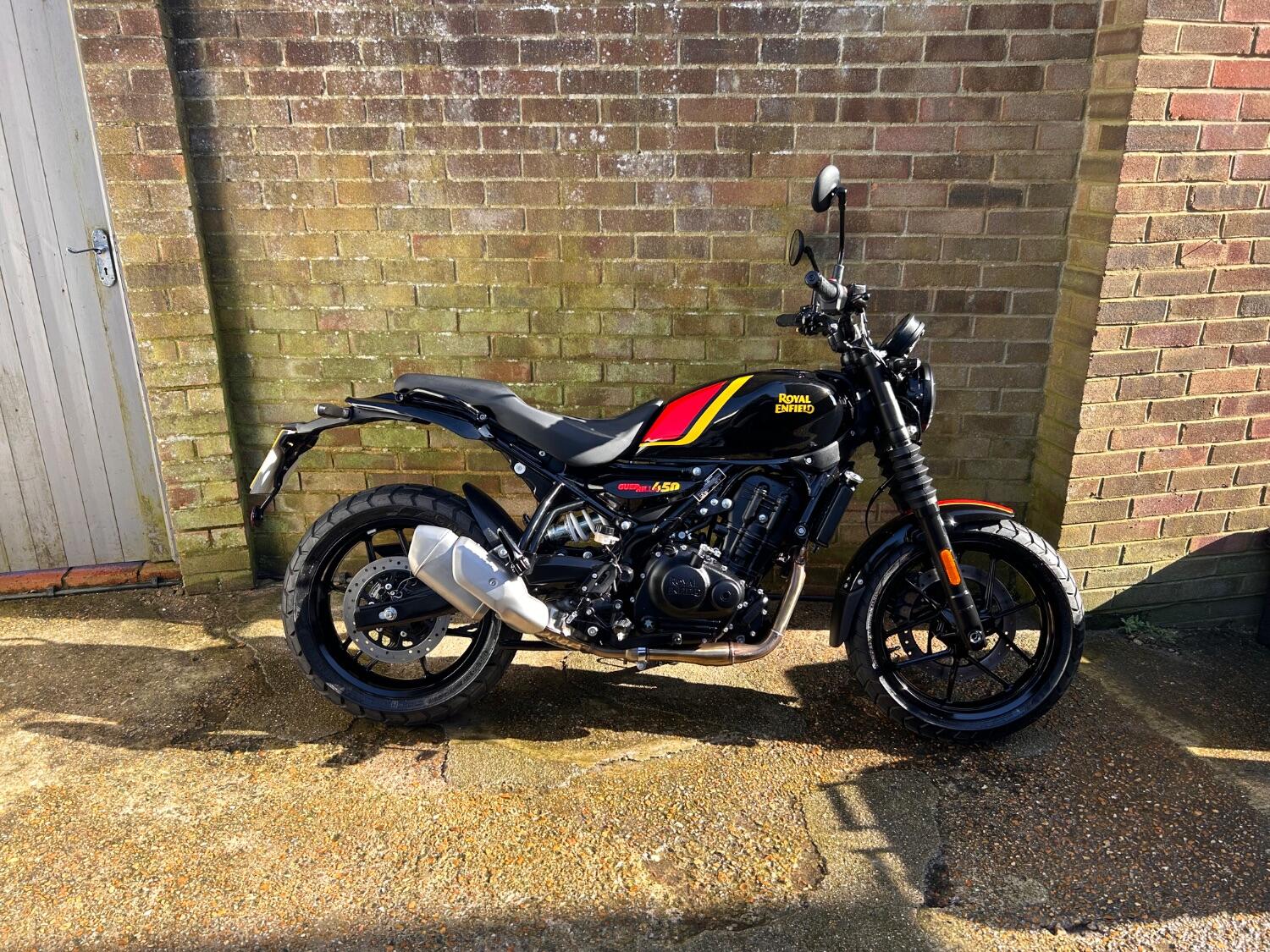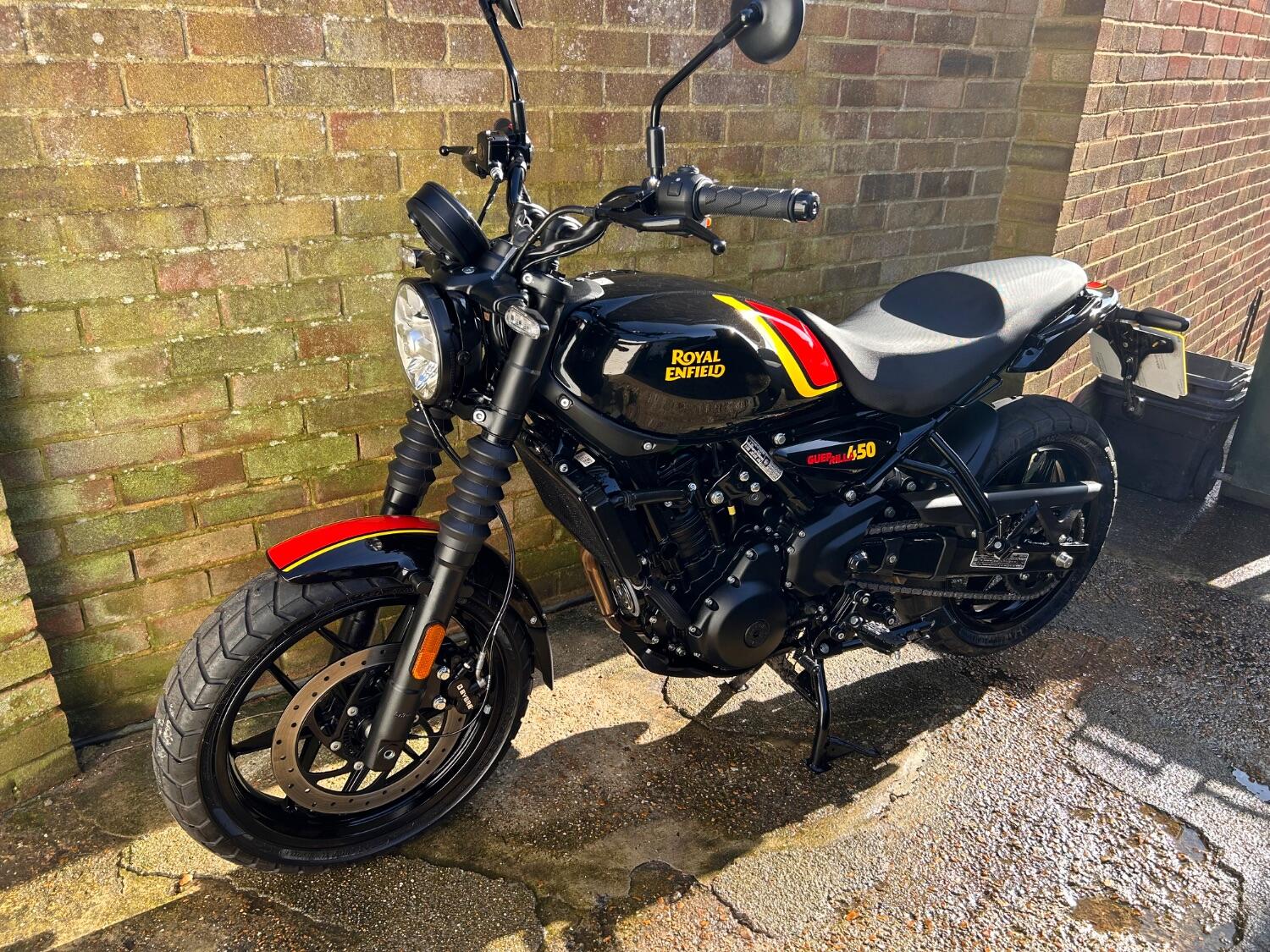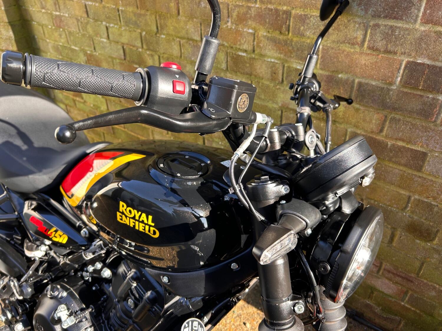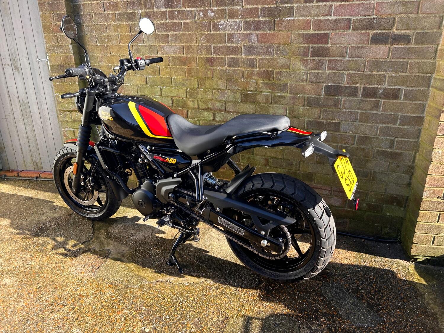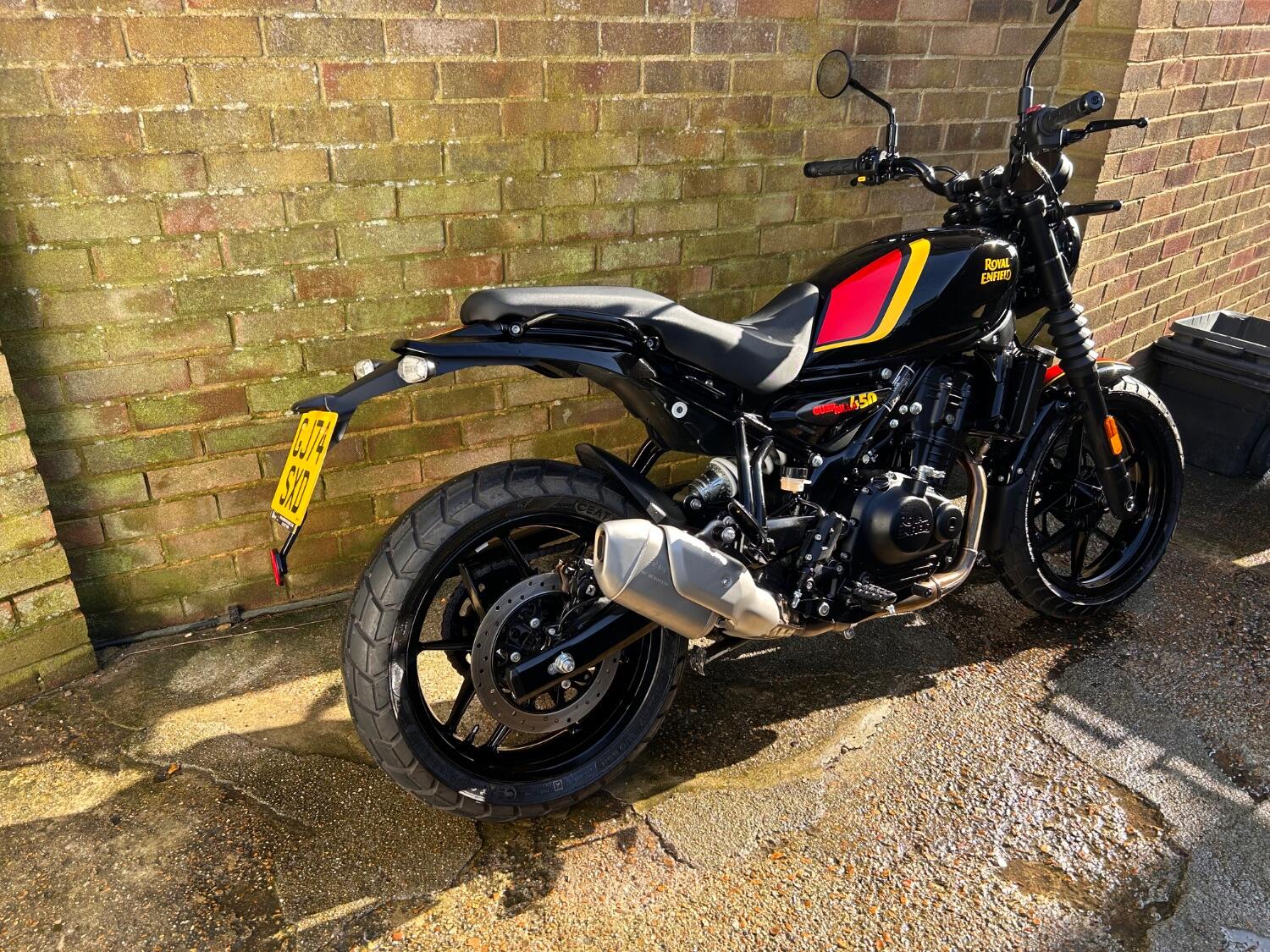 Here we have this stunning Royal Enfield Guerrilla 450, fitted with a USB-C charging port, Front fender extender, This bike has 2 keys, full service history, and only 300 miles. The bike has had one owner from new, The bike will come with the Balance of the manufacture warranty, with the option to extend to 12-24 months. We offer nationwide delivery on all of our bikes. HPI checked, comprehensive safety check, MOT history check, and professional valet included. Reserve this bike on our website now
