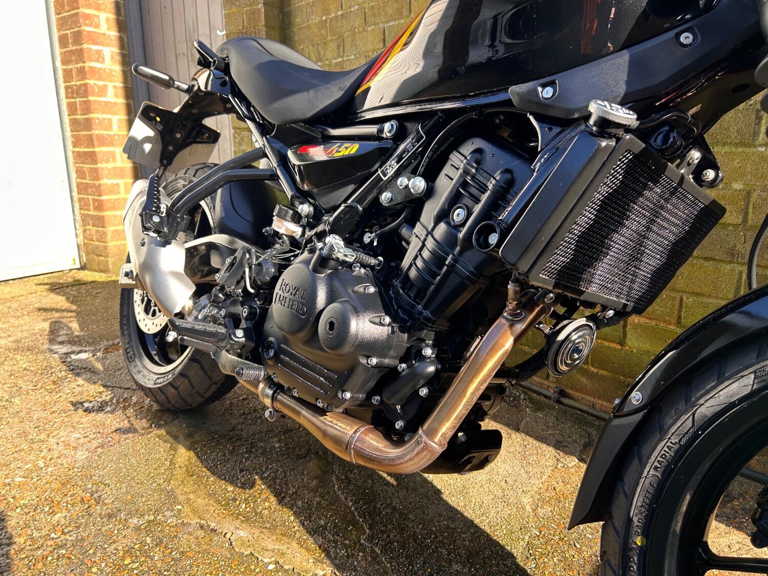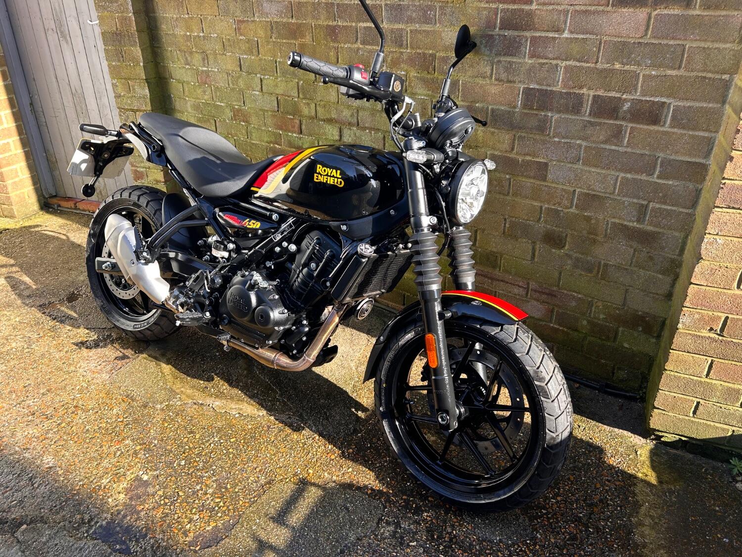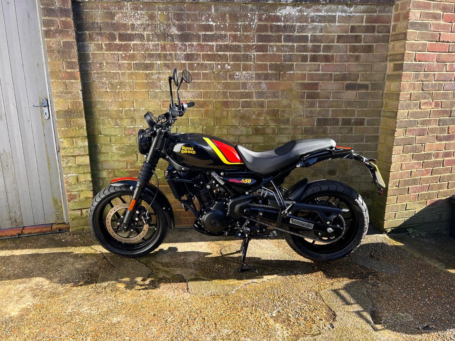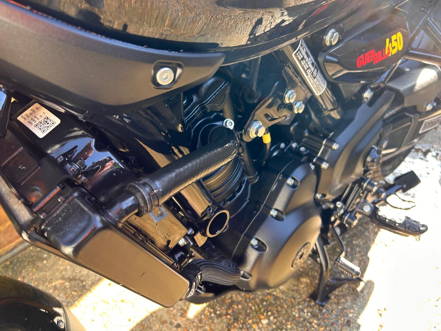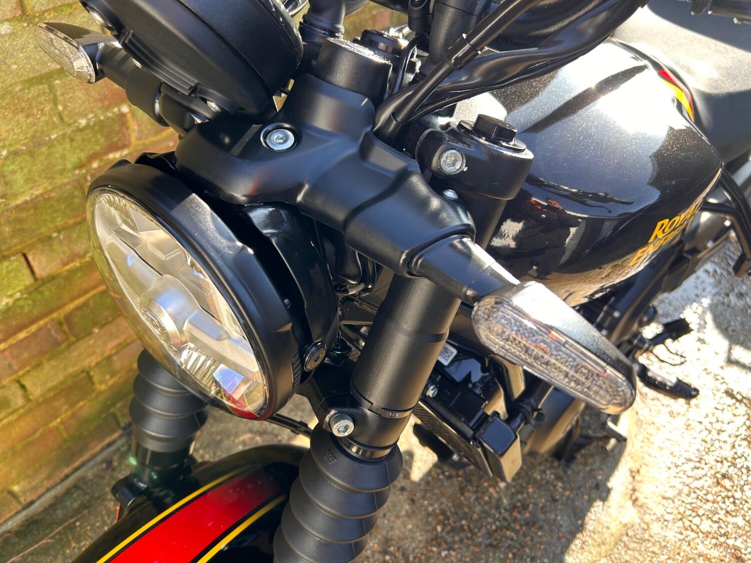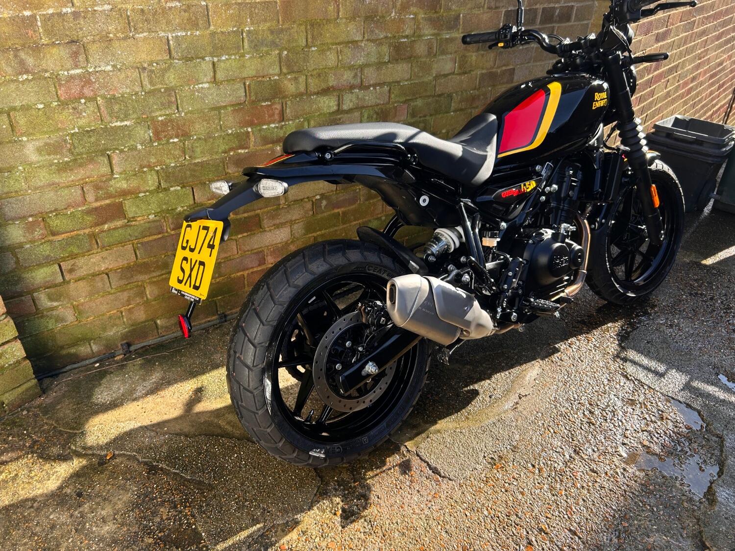 Here we have this stunning Royal Enfield Guerrilla 450, fitted with a USB-C charging port, Front fender extender, This bike has 2 keys, full service history, and only 300 miles. The bike has had one owner from new, The bike will come with the Balance of the manufacture warranty, with the option to extend to 12-24 months. We offer nationwide delivery on all of our bikes. HPI checked, comprehensive safety check, MOT history check, and professional valet included. Reserve this bike on our website now