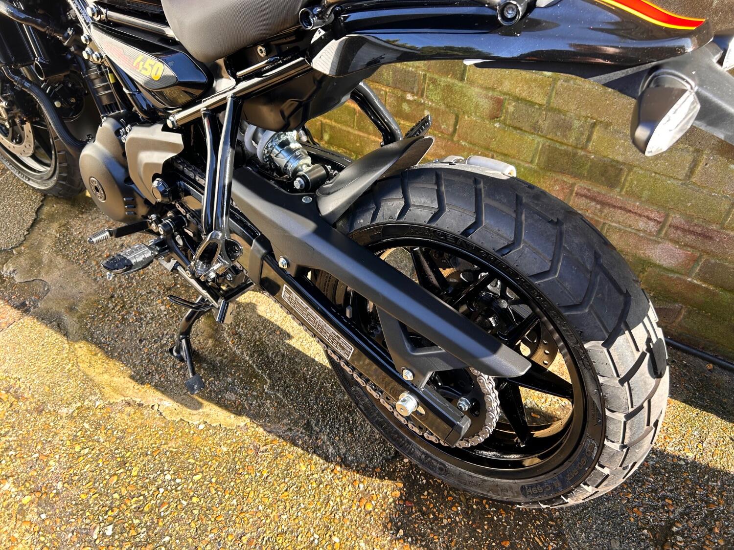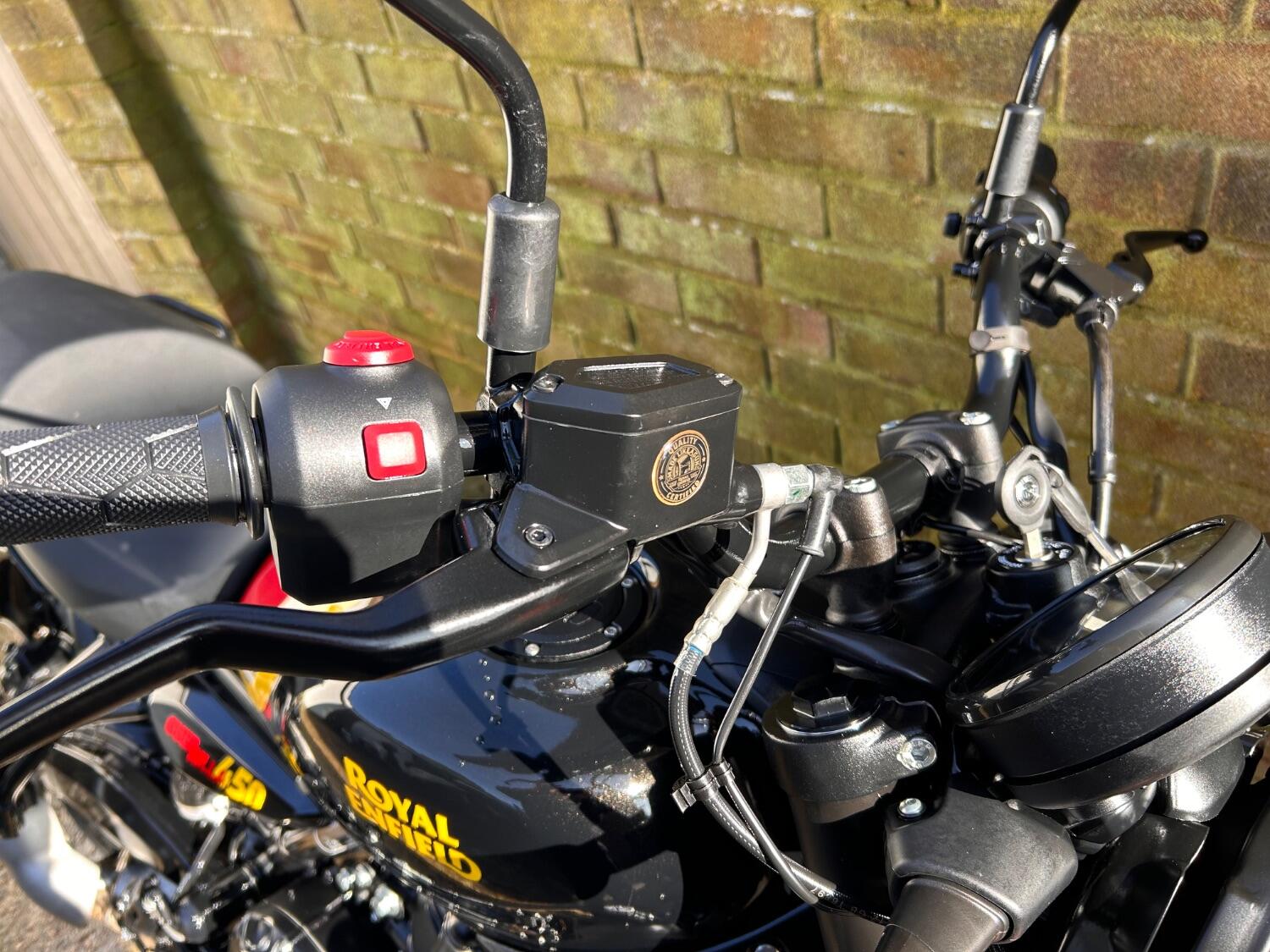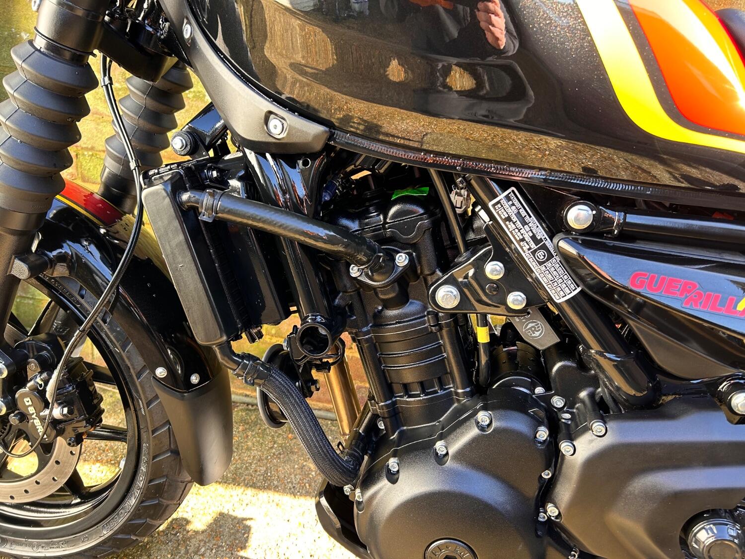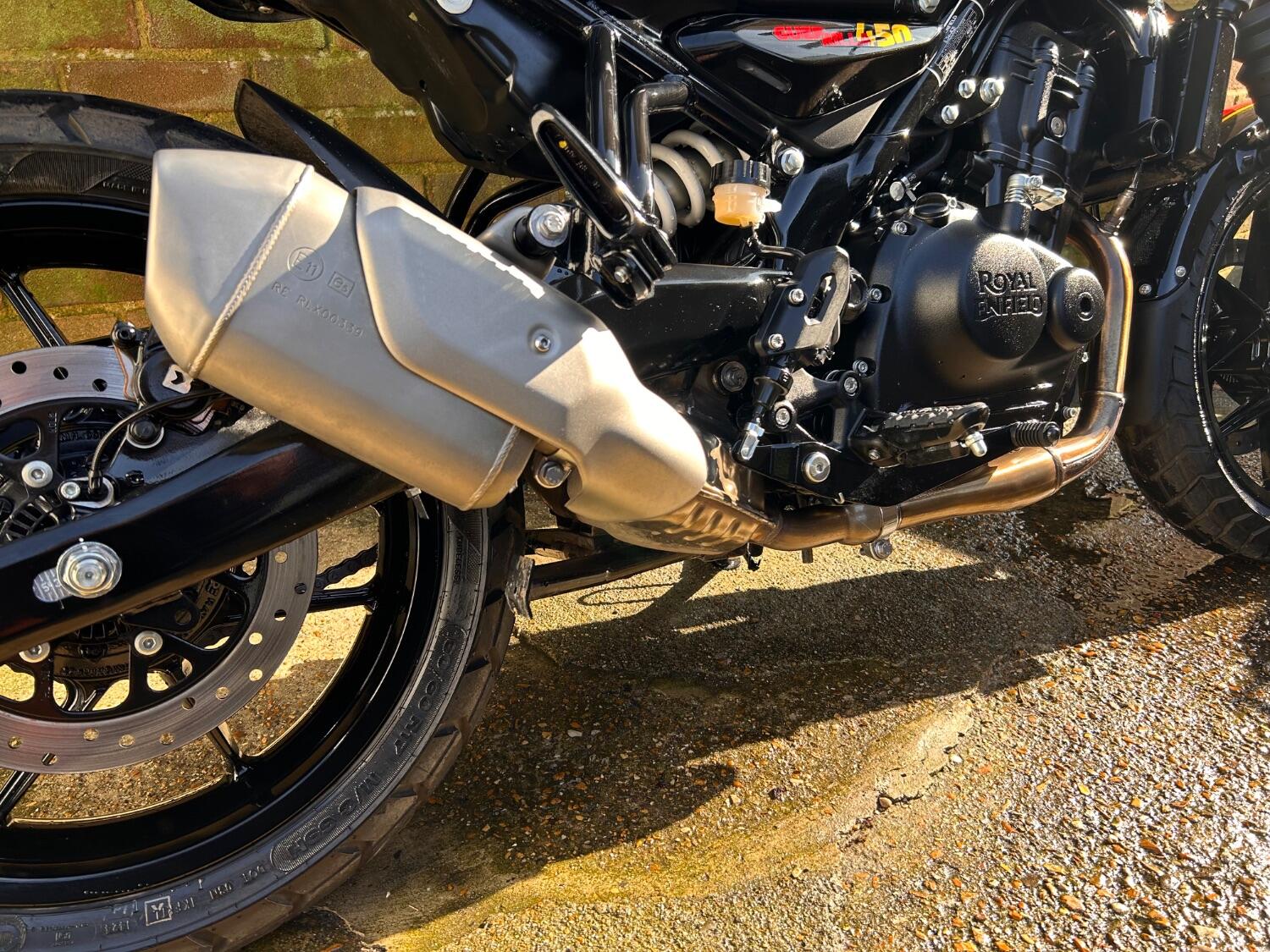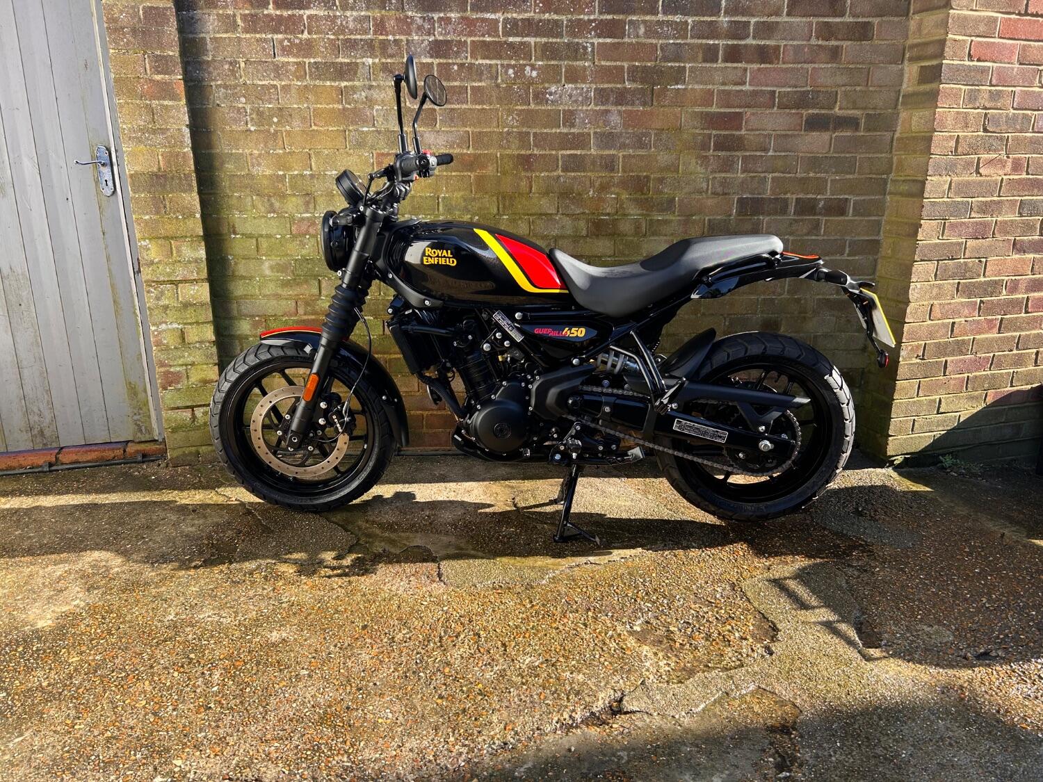 Here we have this stunning Royal Enfield Guerrilla 450, fitted with a USB-C charging port, Front fender extender, This bike has 2 keys, full service history, and only 300 miles. The bike has had one owner from new, The bike will come with the Balance of the manufacture warranty, with the option to extend to 12-24 months. We offer nationwide delivery on all of our bikes. HPI checked, comprehensive safety check, MOT history check, and professional valet included. Reserve this bike on our website now