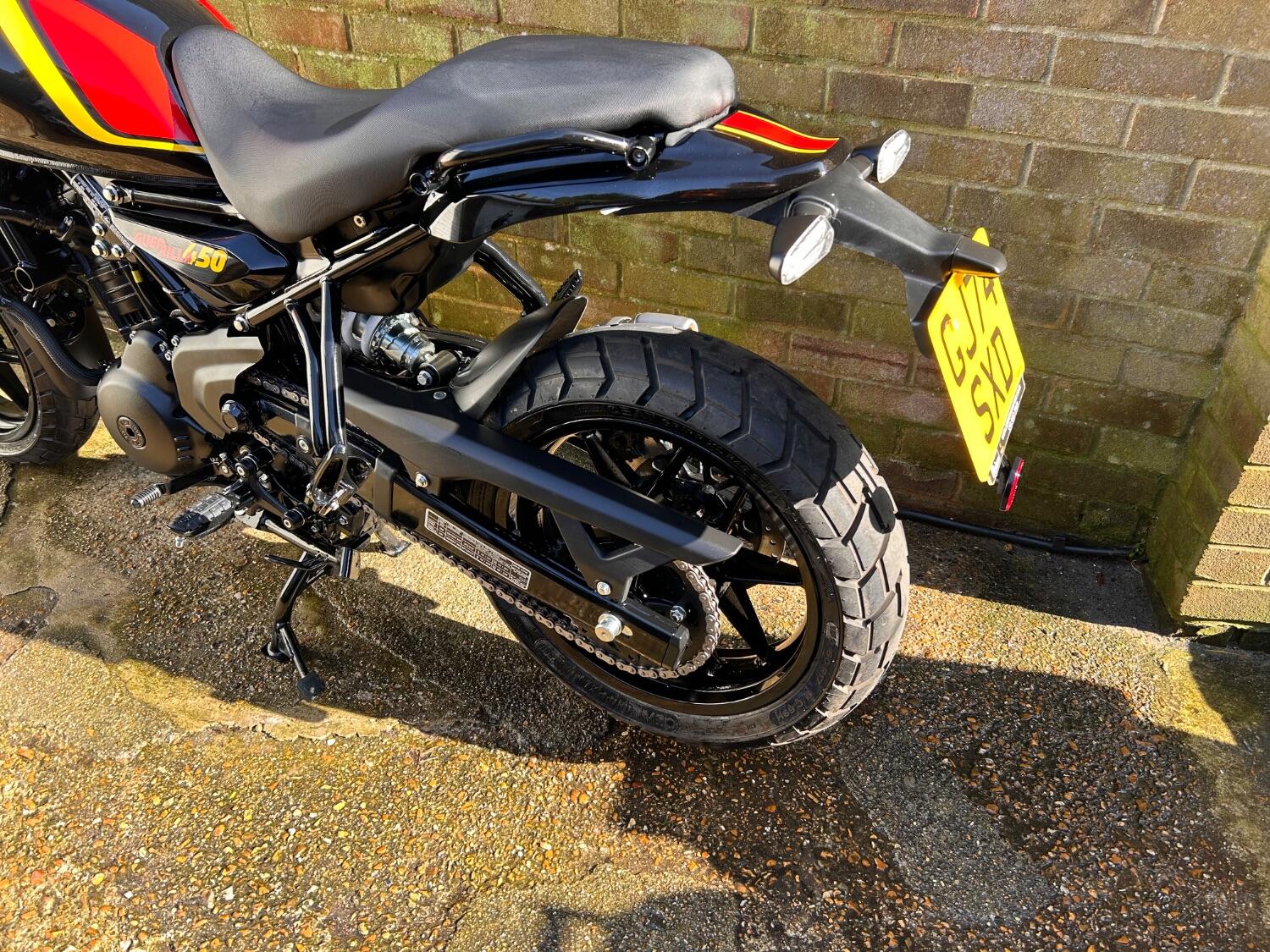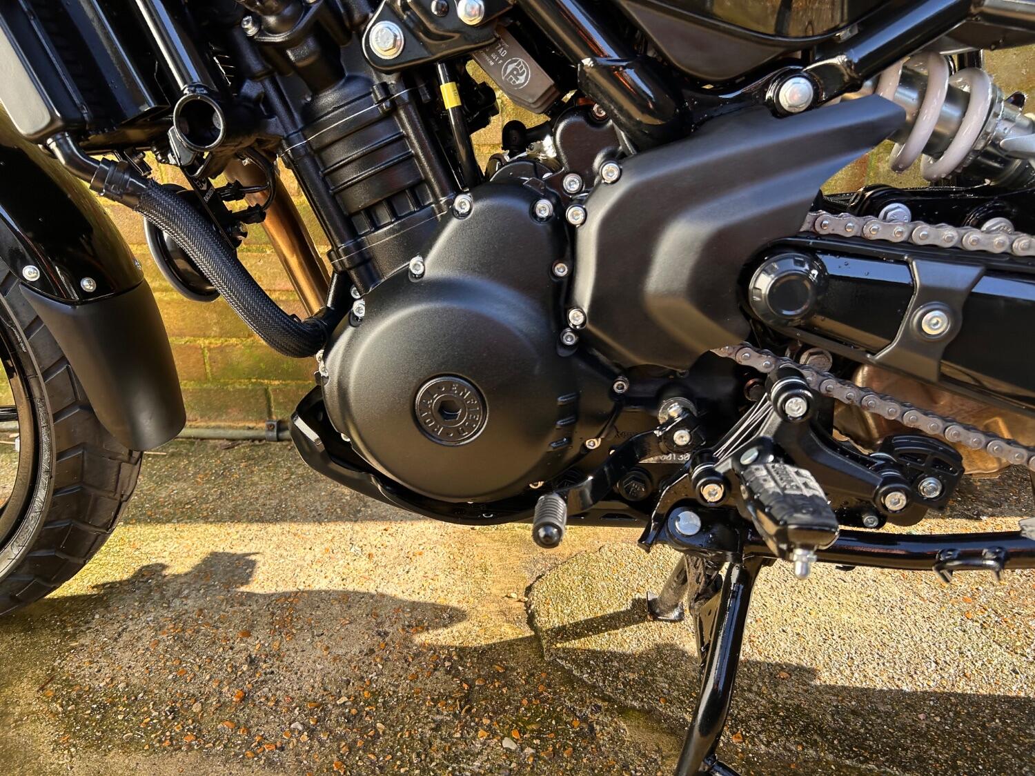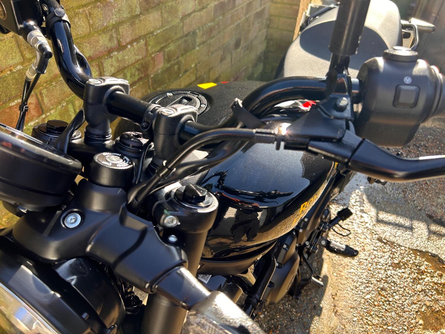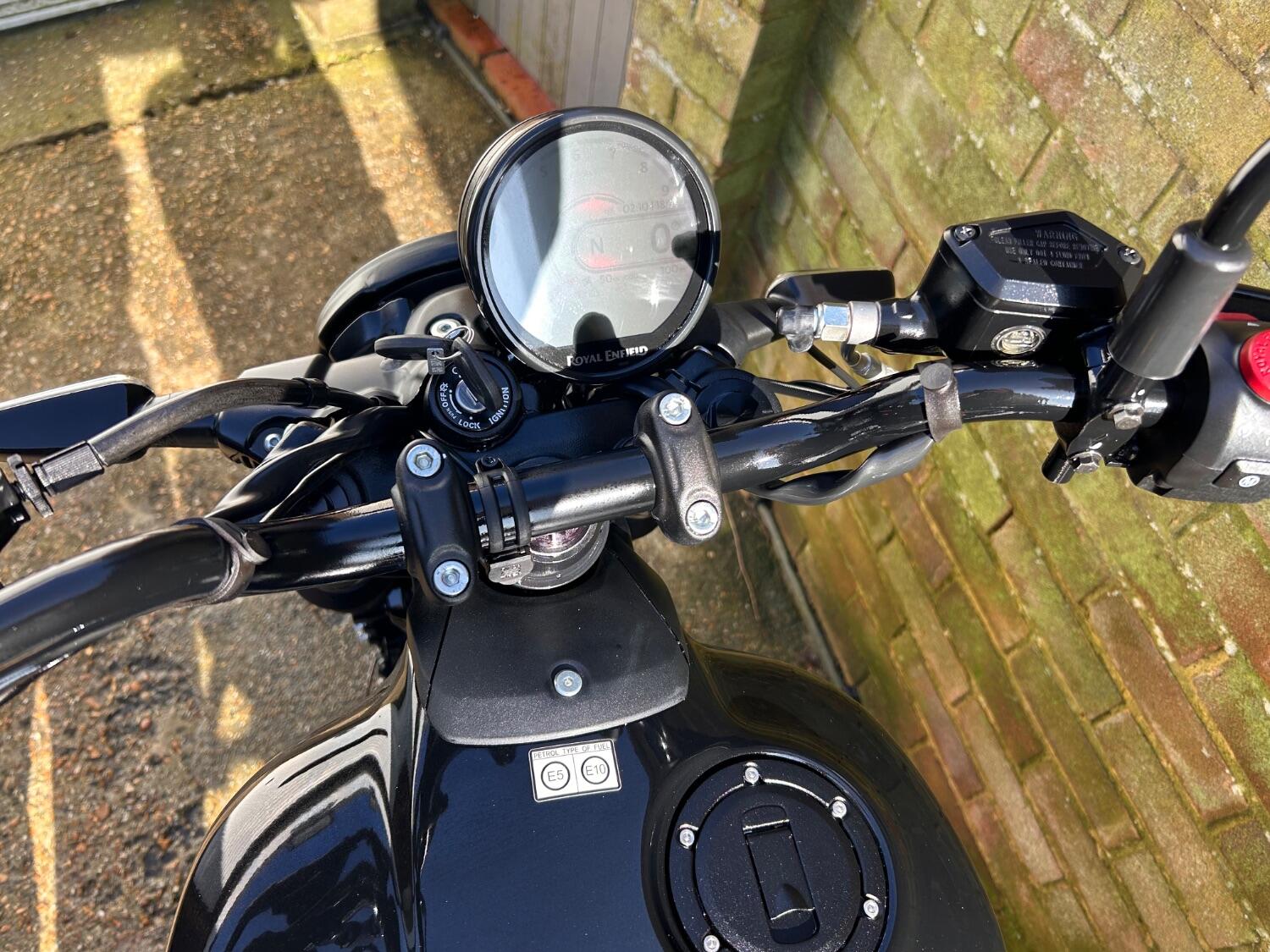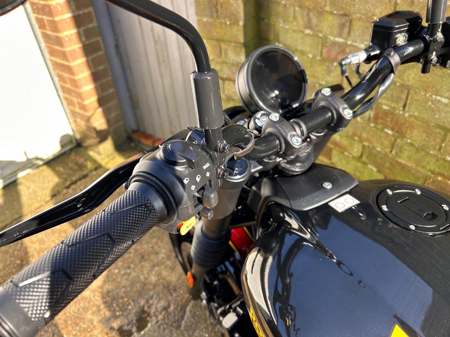 Here we have this stunning Royal Enfield Guerrilla 450, fitted with a USB-C charging port, Front fender extender, This bike has 2 keys, full service history, and only 300 miles. The bike has had one owner from new, The bike will come with the Balance of the manufacture warranty, with the option to extend to 12-24 months. We offer nationwide delivery on all of our bikes. HPI checked, comprehensive safety check, MOT history check, and professional valet included. Reserve this bike on our website now