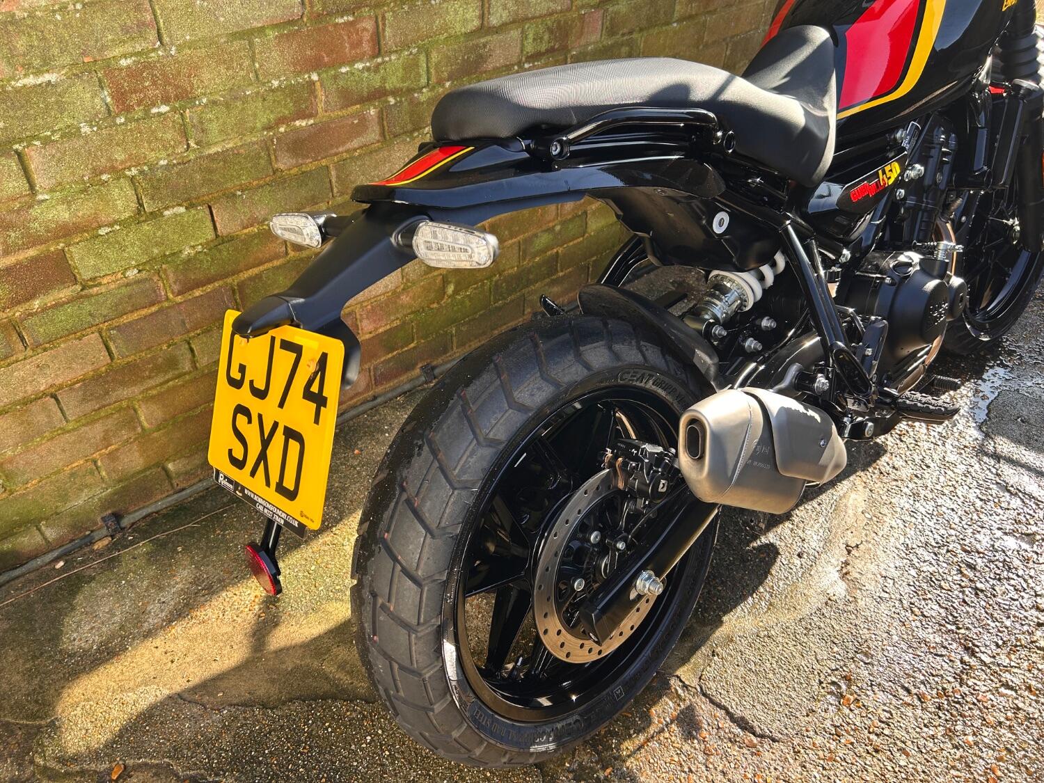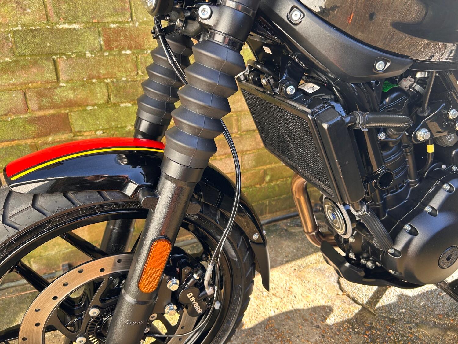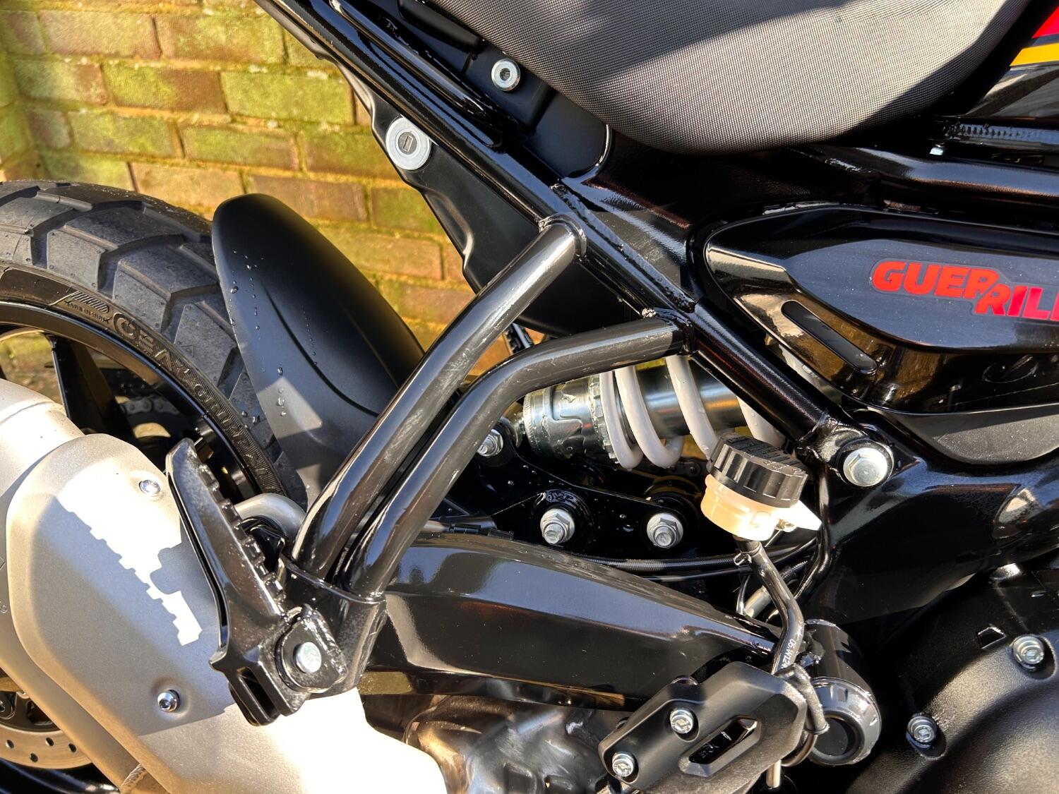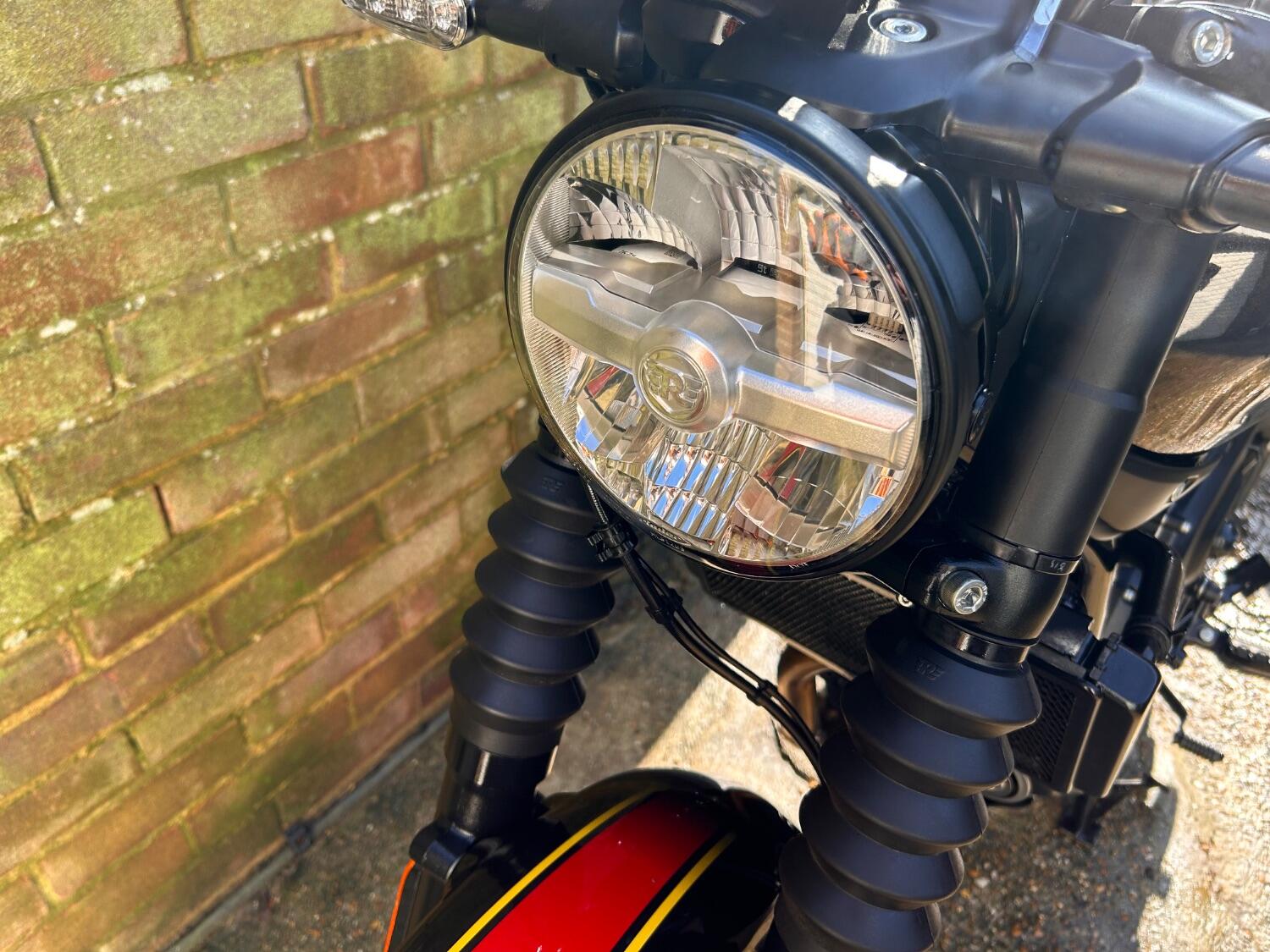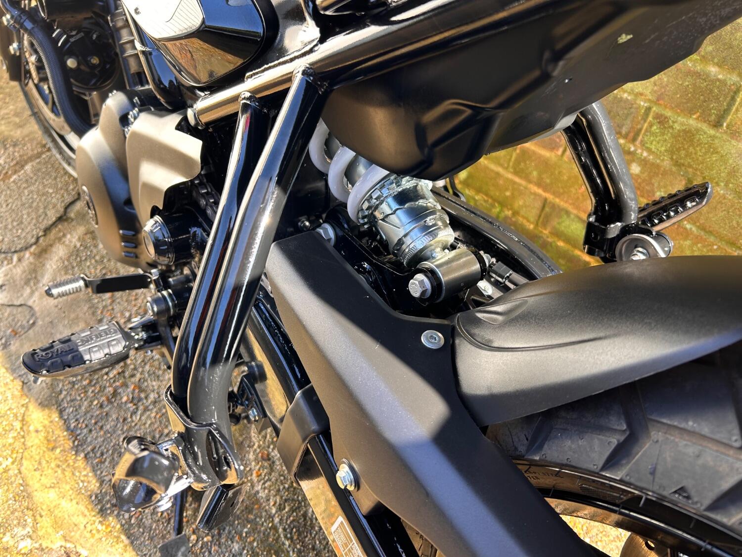 Here we have this stunning Royal Enfield Guerrilla 450, fitted with a USB-C charging port, Front fender extender, This bike has 2 keys, full service history, and only 300 miles. The bike has had one owner from new, The bike will come with the Balance of the manufacture warranty, with the option to extend to 12-24 months. We offer nationwide delivery on all of our bikes. HPI checked, comprehensive safety check, MOT history check, and professional valet included. Reserve this bike on our website now