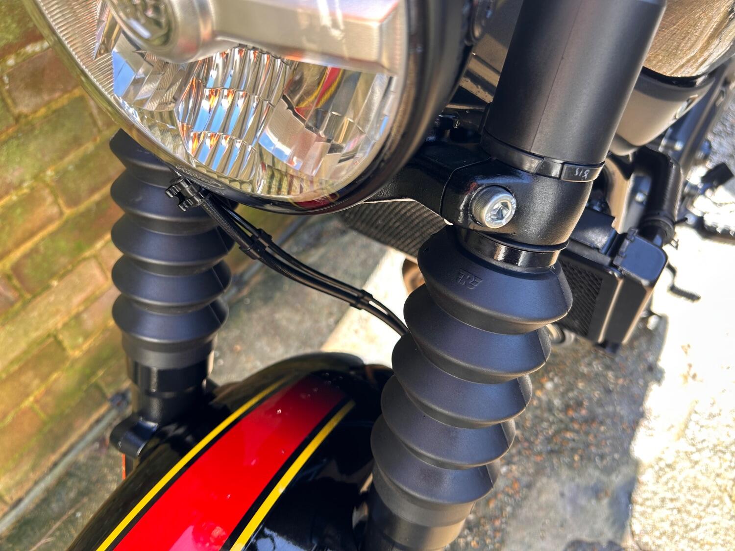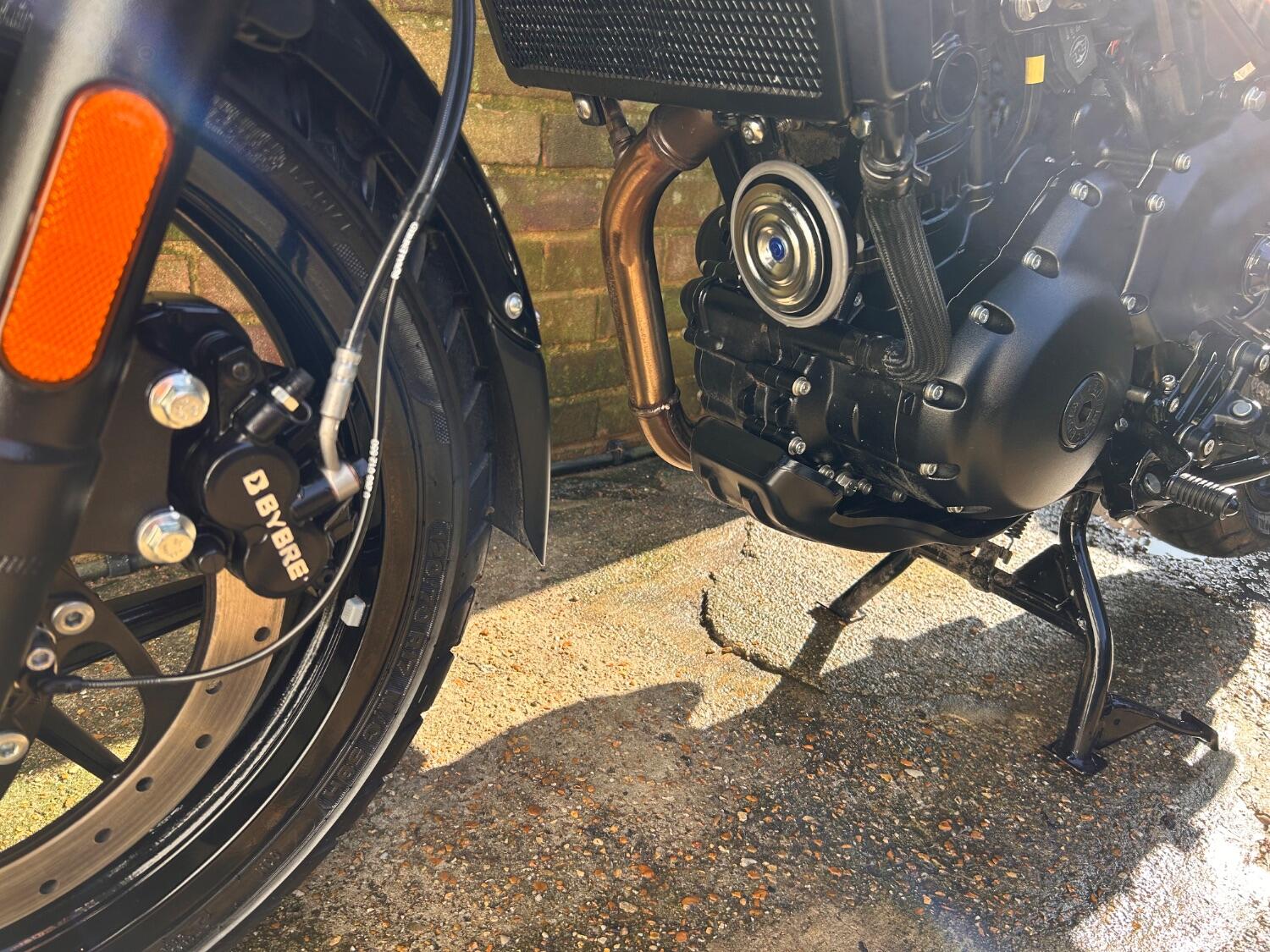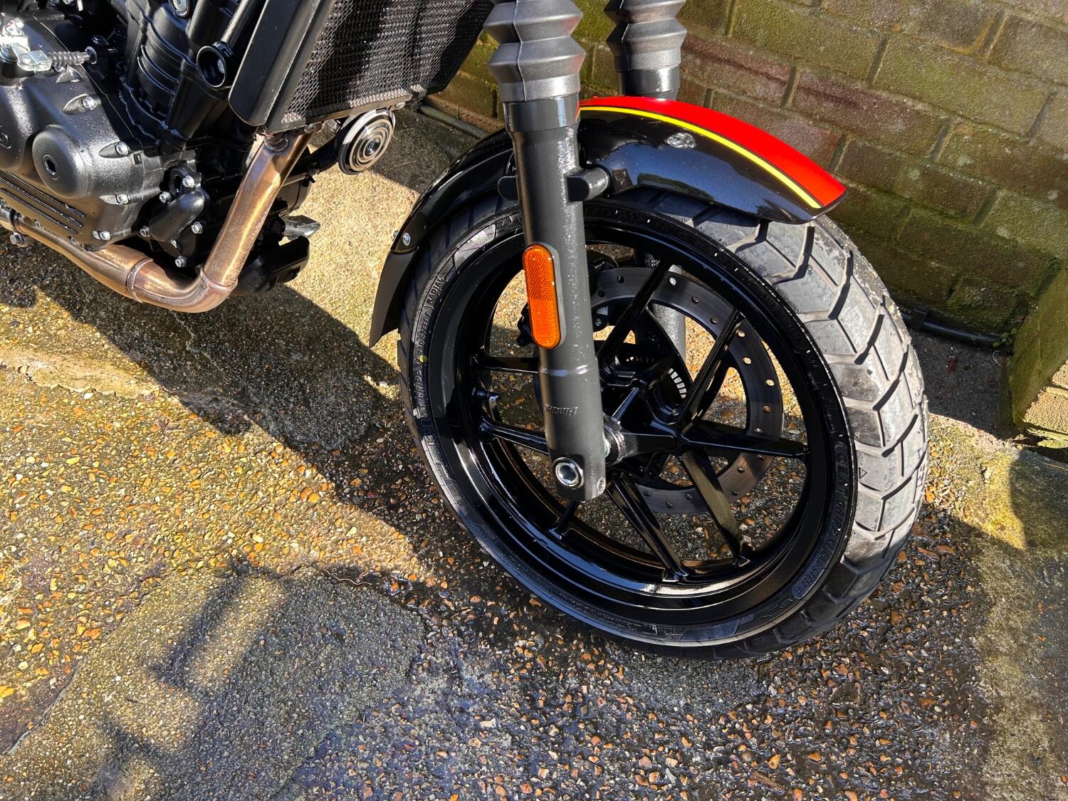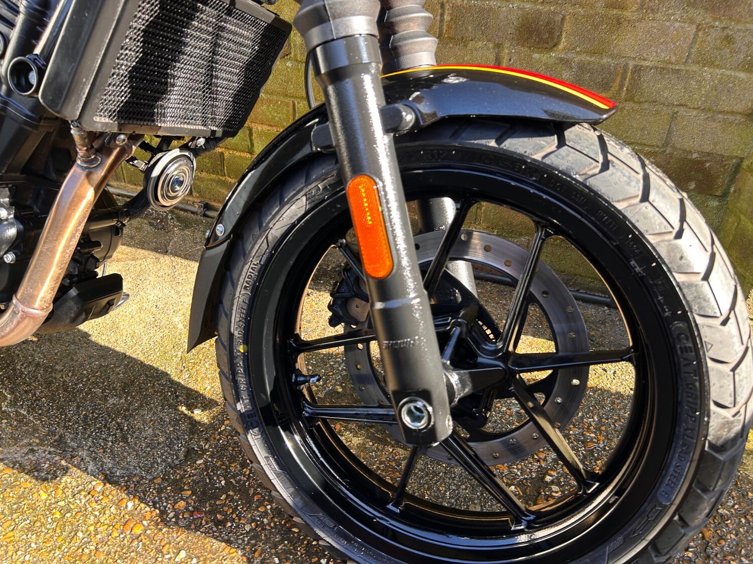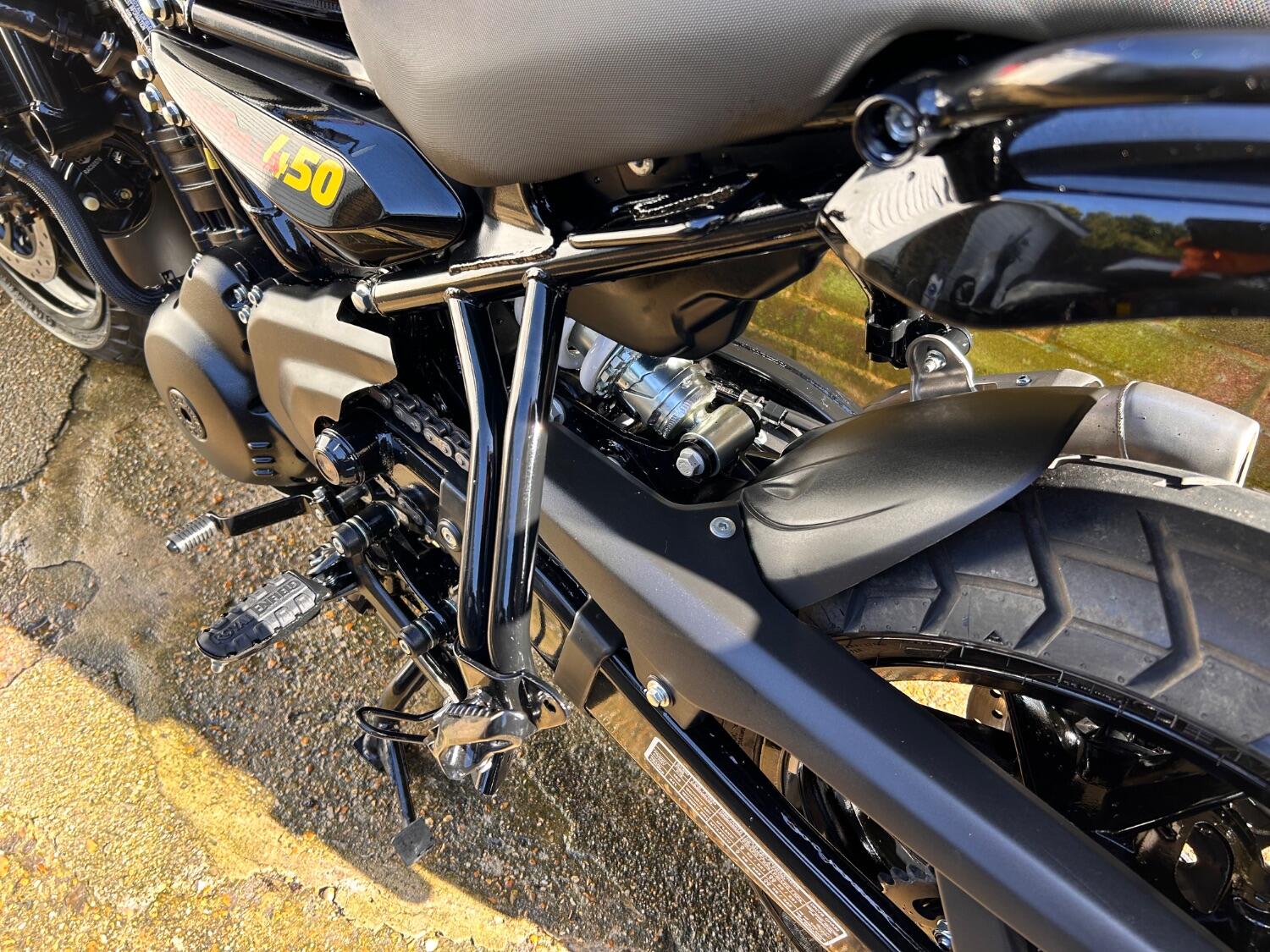Here we have this stunning Royal Enfield Guerrilla 450, fitted with a USB-C charging port, Front fender extender, This bike has 2 keys, full service history, and only 300 miles. The bike has had one owner from new, The bike will come with the Balance of the manufacture warranty, with the option to extend to 12-24 months. We offer nationwide delivery on all of our bikes. HPI checked, comprehensive safety check, MOT history check, and professional valet included. Reserve this bike on our website now