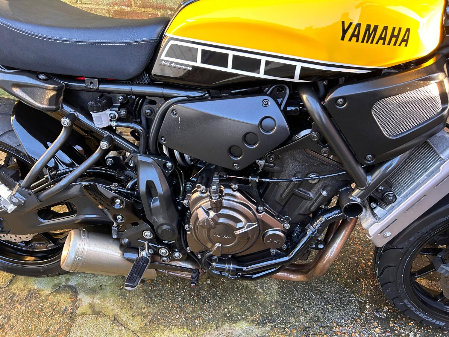 Here we have a stunning XSR 700 Kenny Roberts Edition. It comes with 2 keys, part service history, 3 previous owners, and some previous MOT certificates. It has a new front tyre, rear hugger, and MOT valid until 02/01/2026. The bike has been subject to a theft or attempted theft previously, and this is showing on the HPI database, hence the low price. The bike will come with 3 months warranty as standard, with the option to extend to 12-24 months. We offer nationwide delivery on all of our bikes. HPI checked, comprehensive safety check, MOT history check, and professional valet included. Reserve this bike on our website now at www.yesmoto.co.uk.